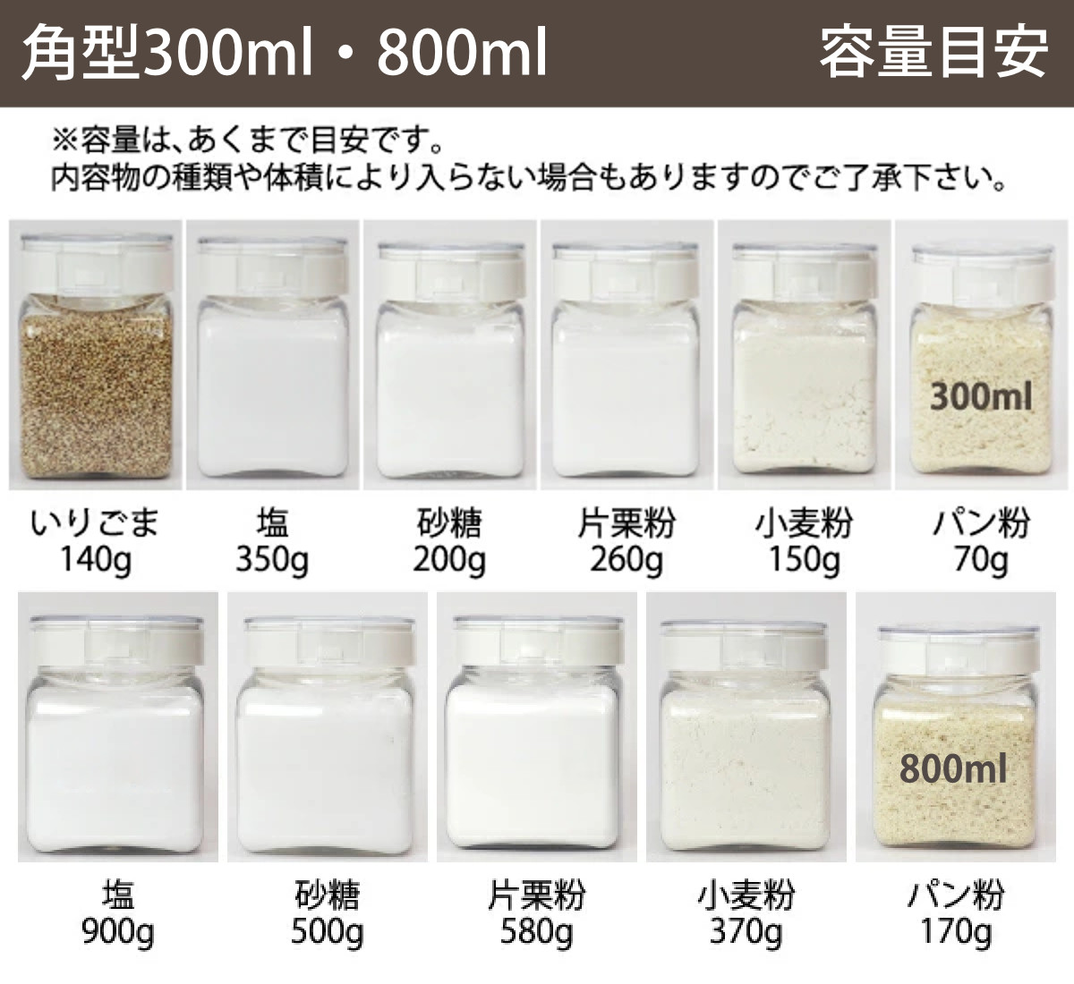 300ml・・・砂糖、塩、顆粒だしなどの頻繁に使う調味料