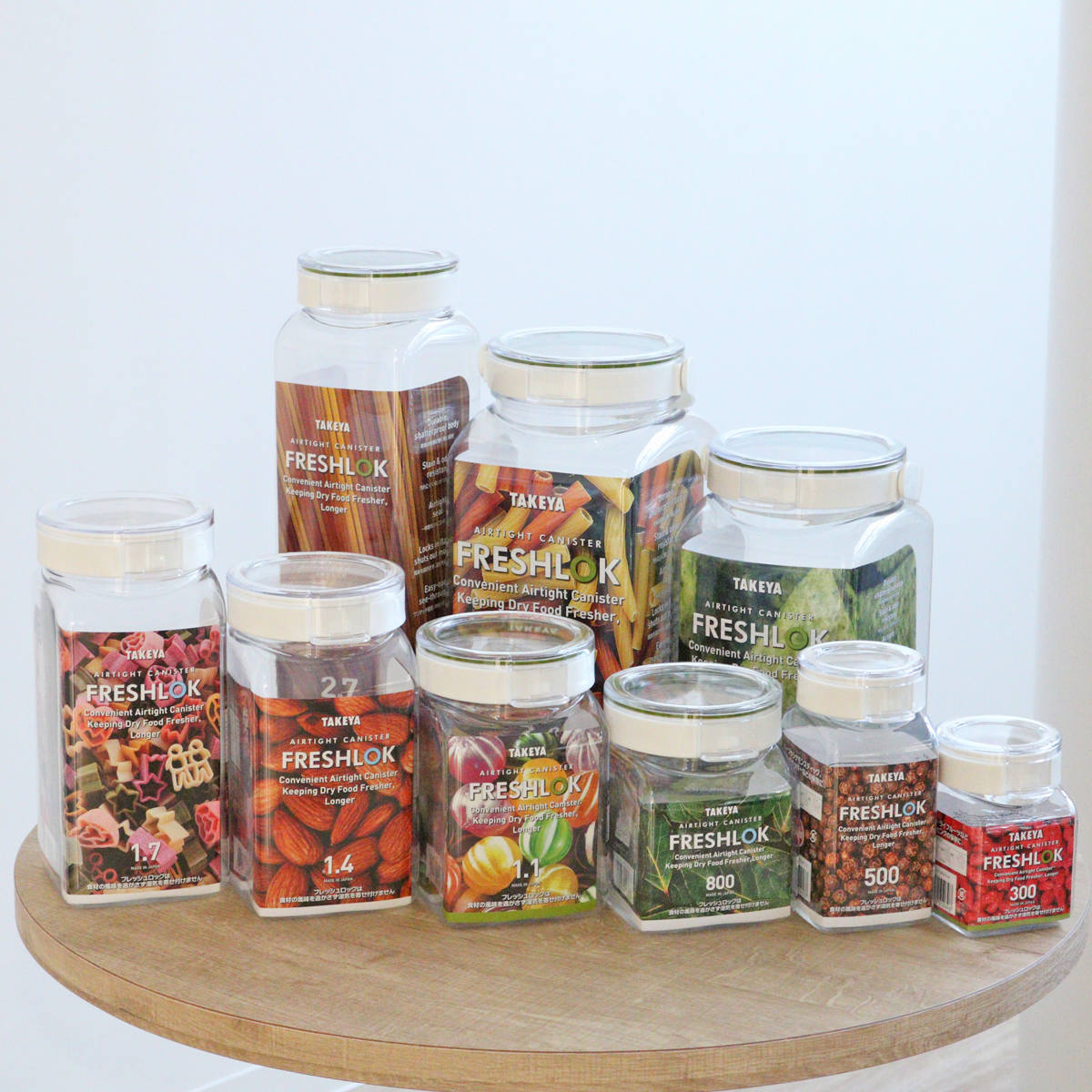 どんな場所にも無駄なく収納できる幅広いサイズ展開。入れたい食材と収納場所に合わせて選ぶことができます。シンプルなデザインなのでサイズ違いを並べてもスッキリしたした印象です。