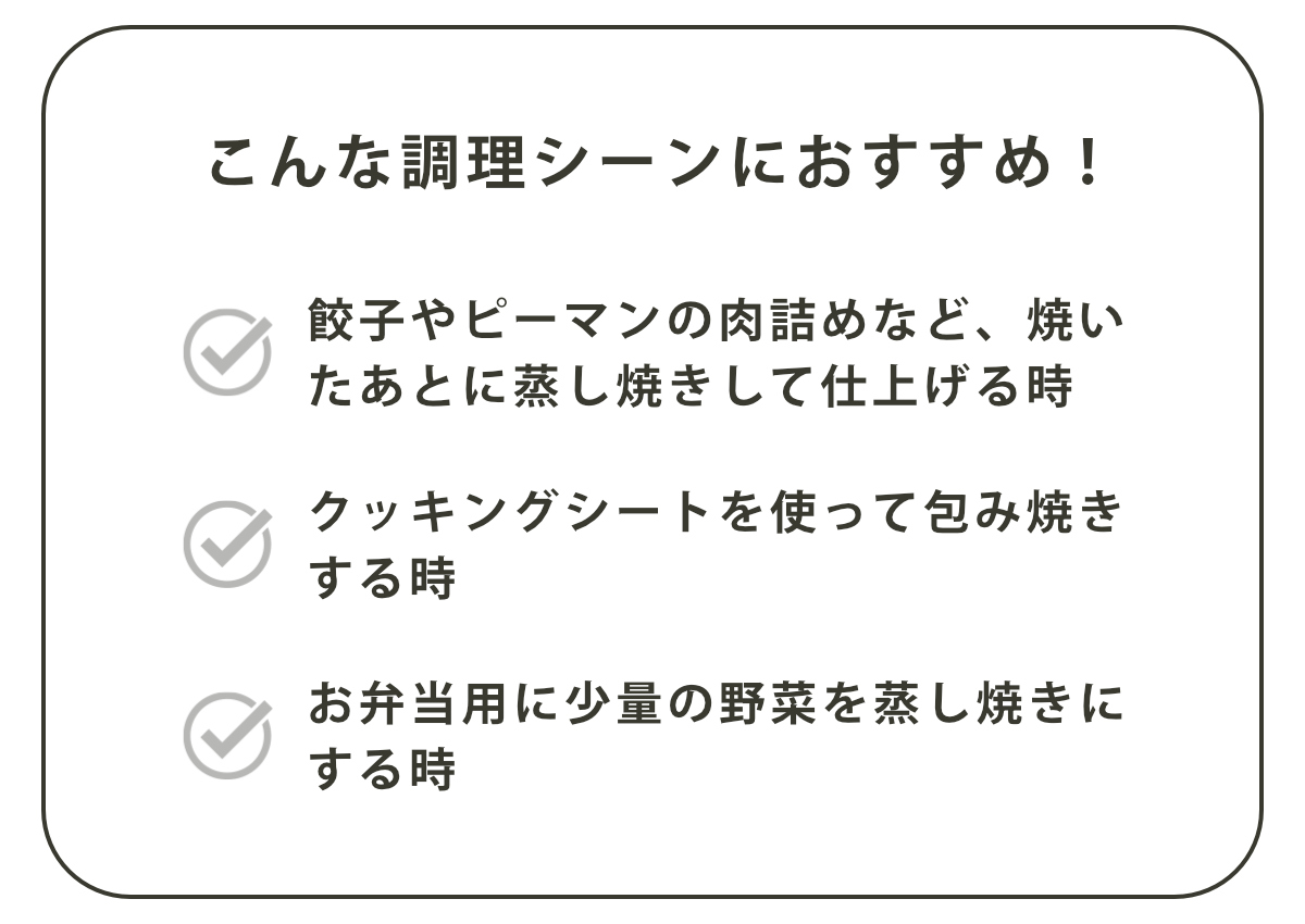 お弁当のおかず作りやちょっとした調理にちょうどいい卵焼き器と蓋のセットです。少量の炒め物や煮物など、卵焼き以外にも幅広いメニューに対応できます。