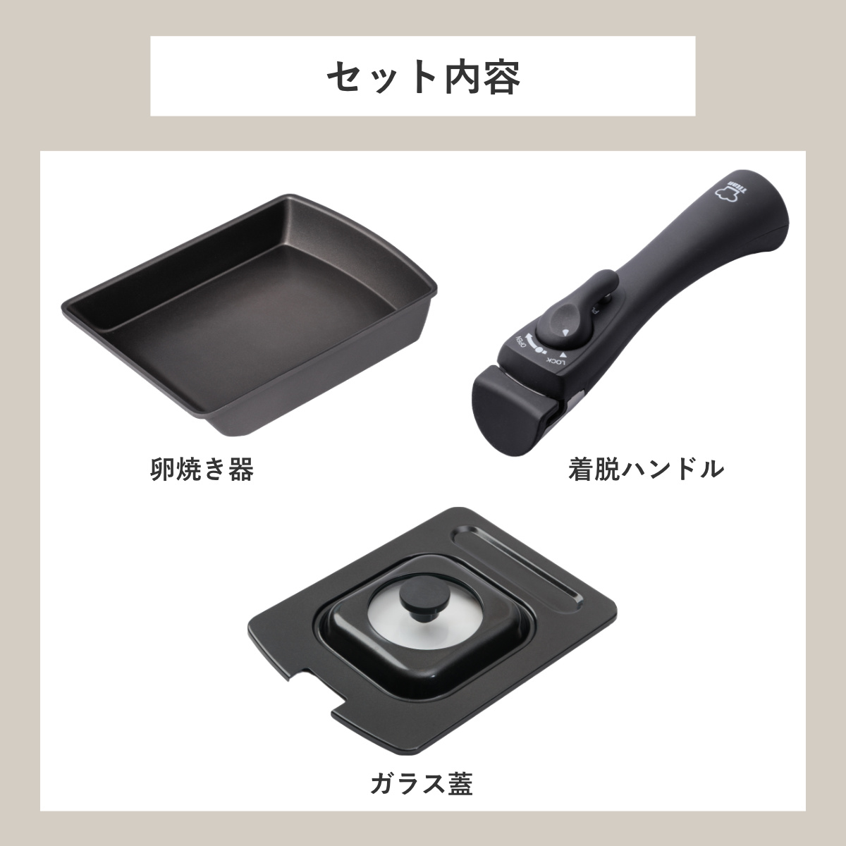 | 内容量 | 3点セット(卵焼き器、ハンドル、ガラス蓋) |