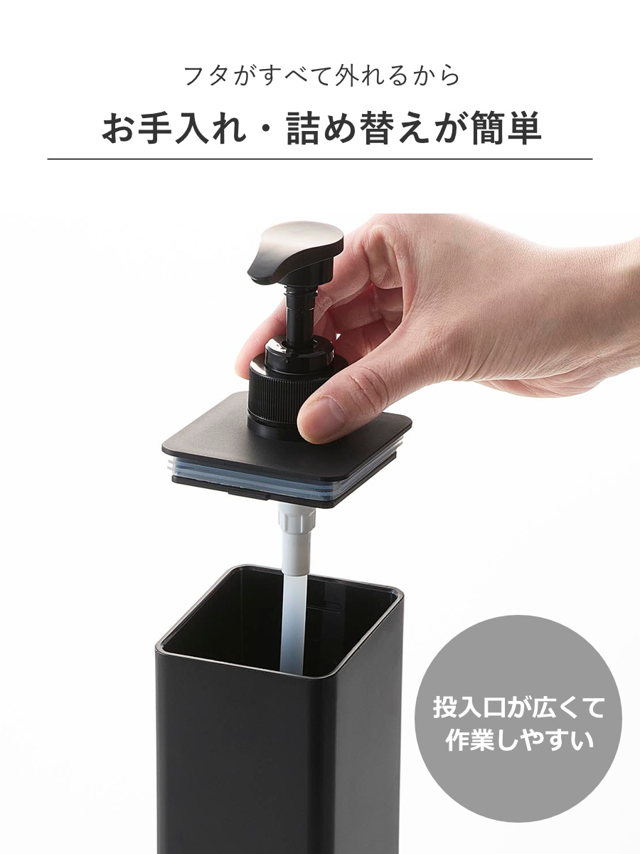 | 材質 | 容器・蓋:ABS樹脂、マグネット パッキン・滑り止め:シリコーン ポンプ:ポリプロピレン、パイプ:ポリエチレン |