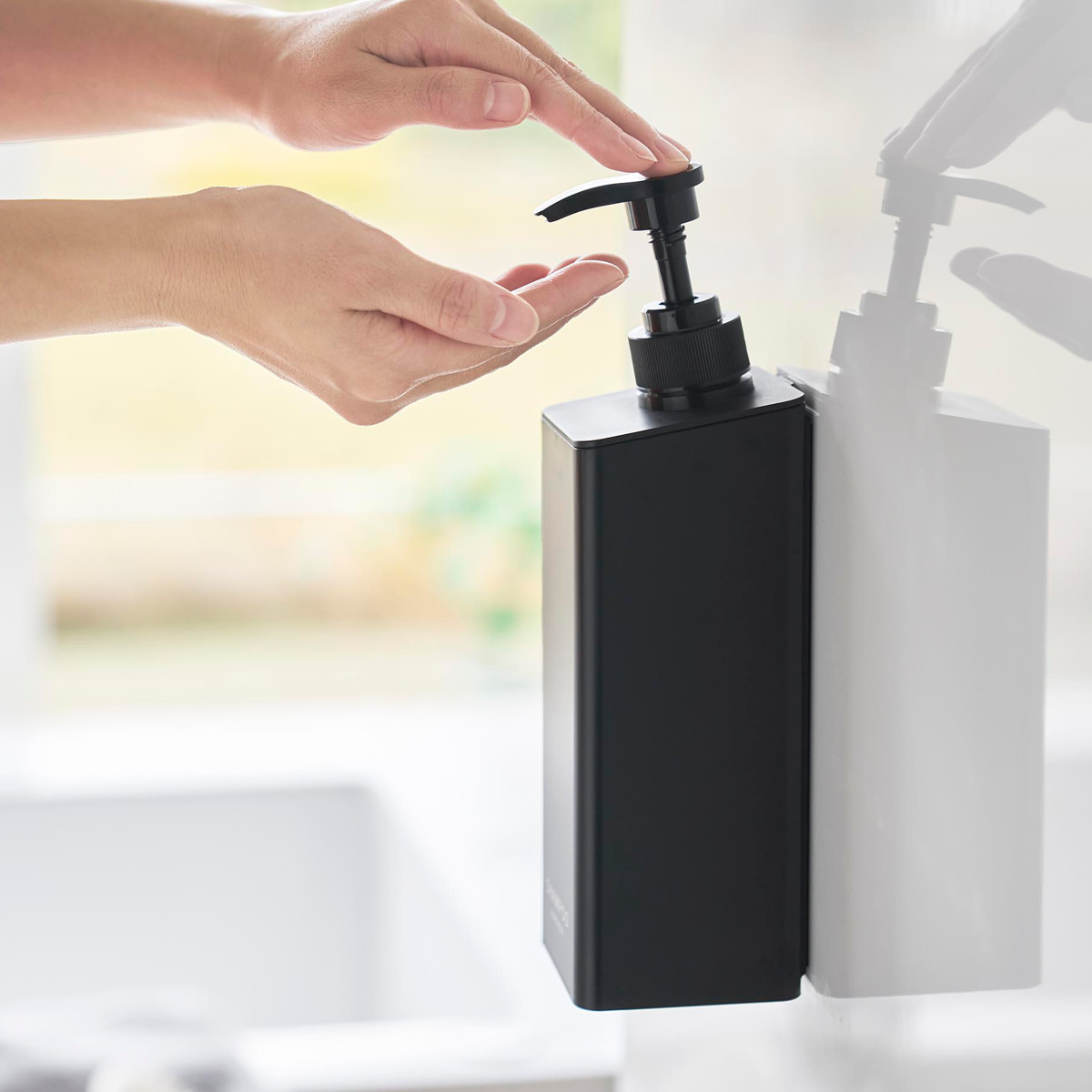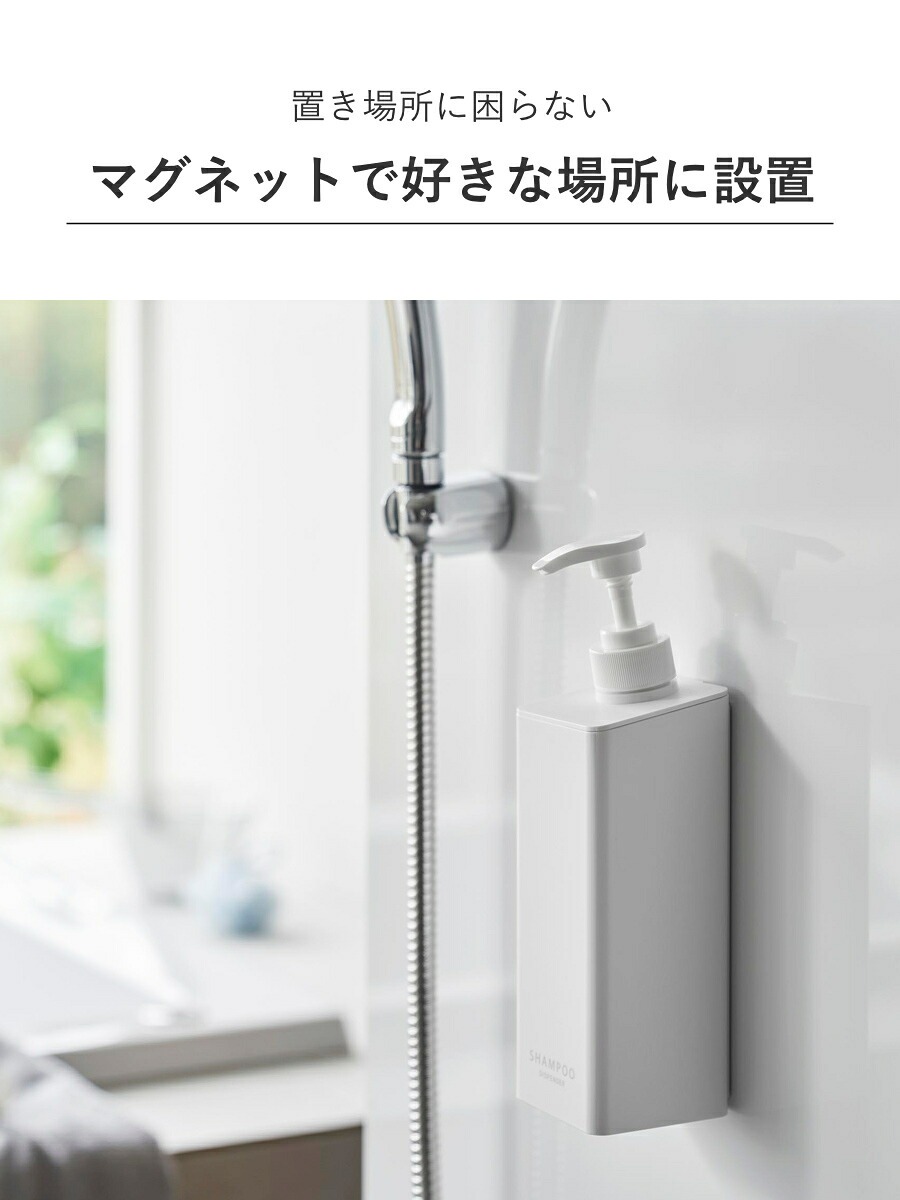 マグネットがつく壁面ならどこでも取り付けできる、ディスペンサーボトルです。ラックなど置くスペースがなくても置き場所に困らず設置できます。浮かせて設置できるので、底のヌメりも気にならず衛生的です。