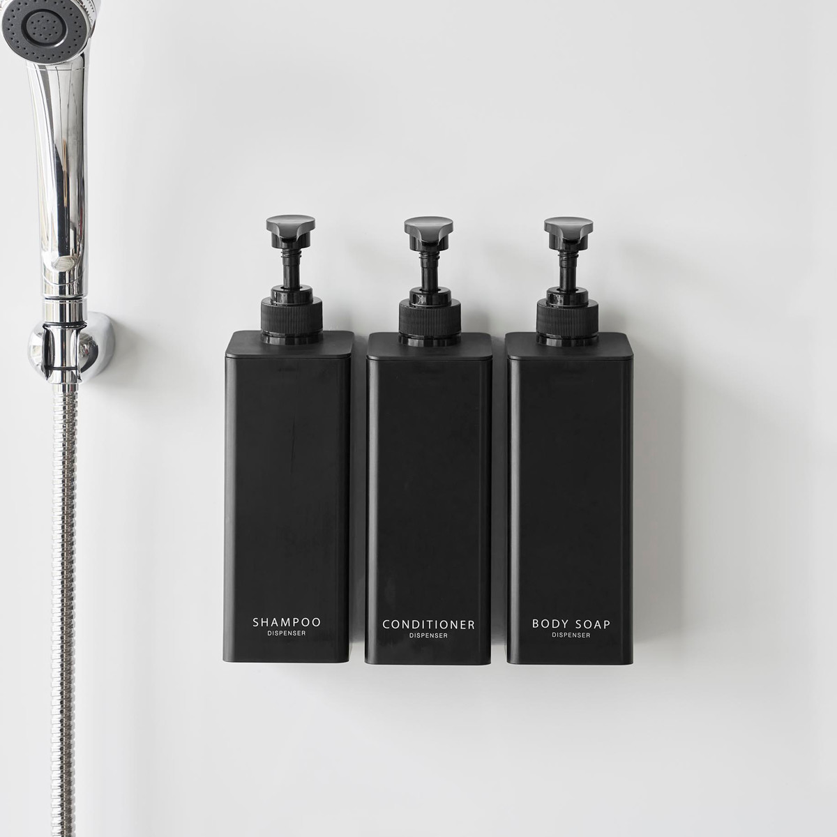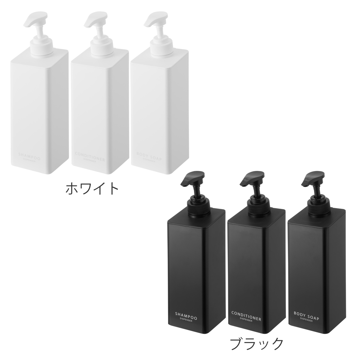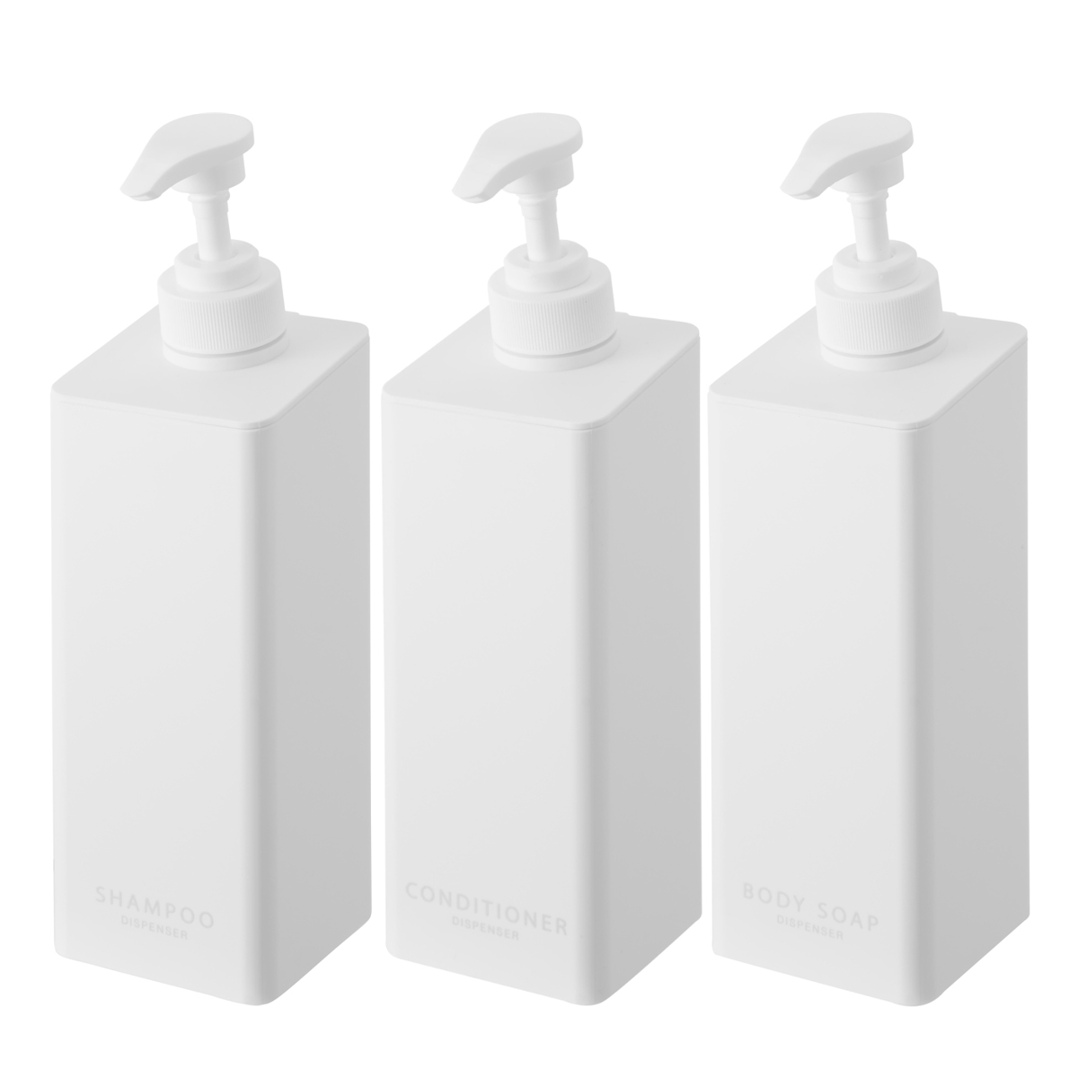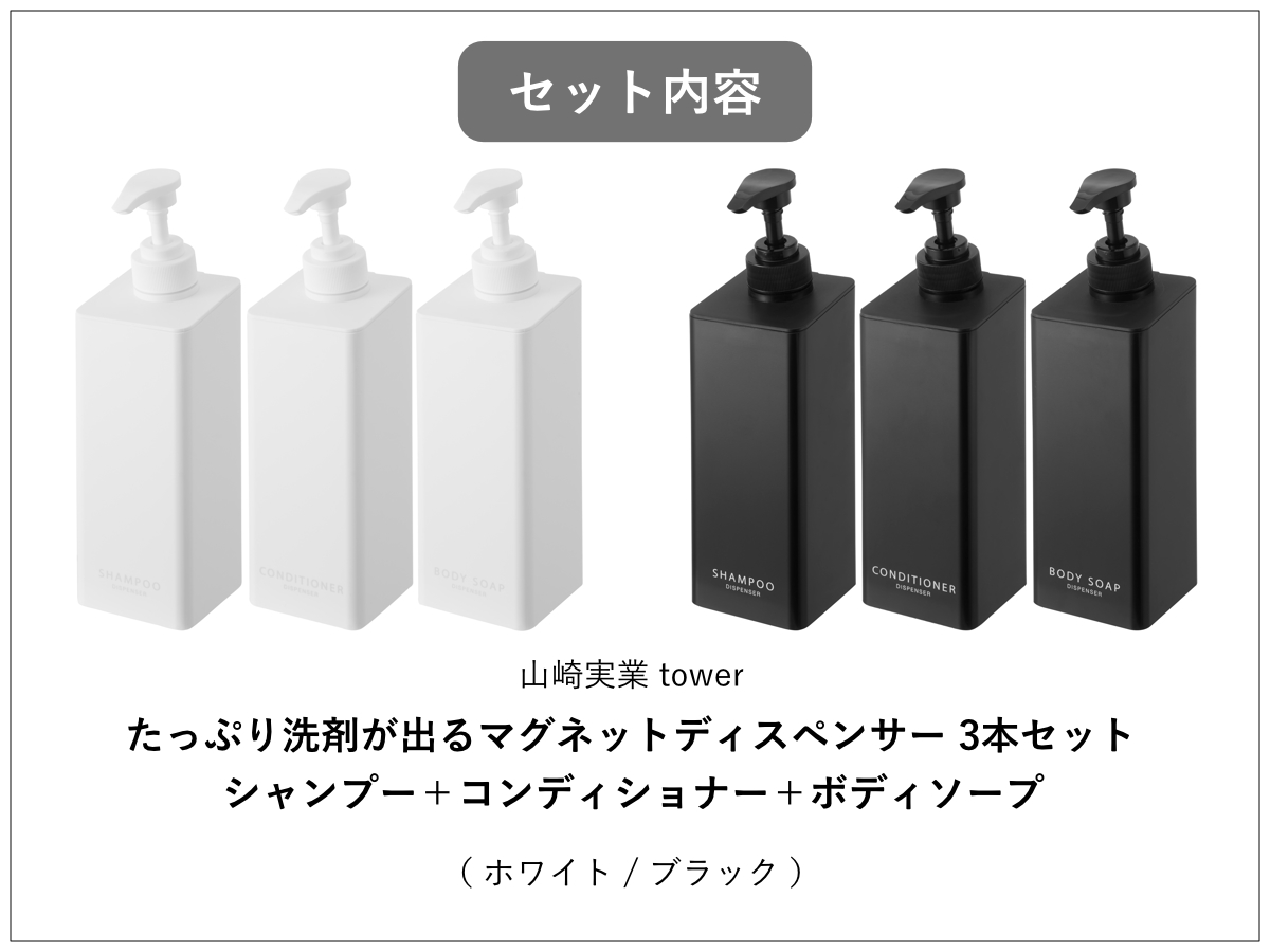 シャンプー・コンディショナー・ボディソープの3本セットです。揃えて使うと見た目もスッキリ整い統一感のあるバスルームになります。