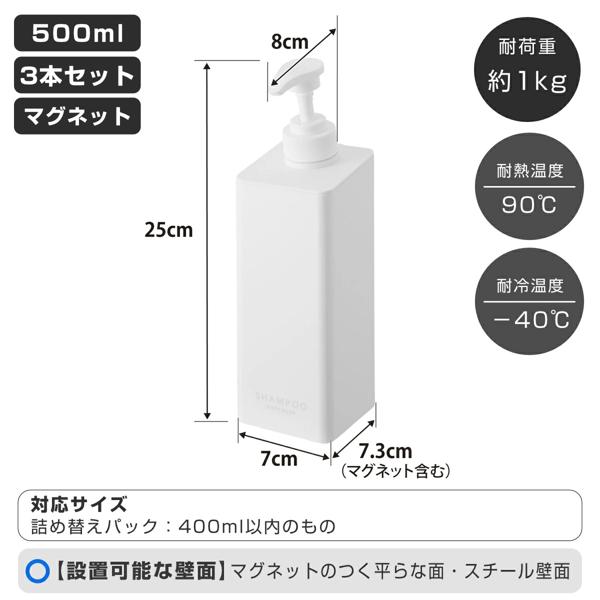 | 対応サイズ | 詰め替え用パック:400ml以内のもの |