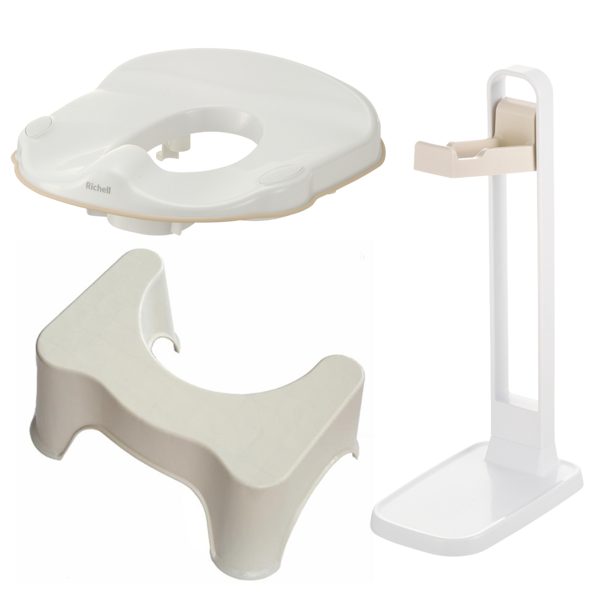 ![]() 補助便座+スタンド | ![]() 補助便座+スタンド+サポートステップ | ![]() 補助便座+スタンド+サポートステップミニ |