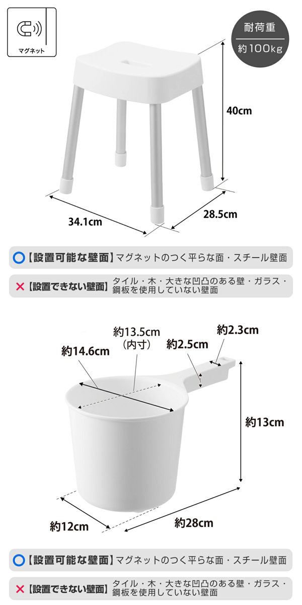 | 内容量 | 【セット内容】 マグネット風呂イス SH40 マグネット手おけ×1 |