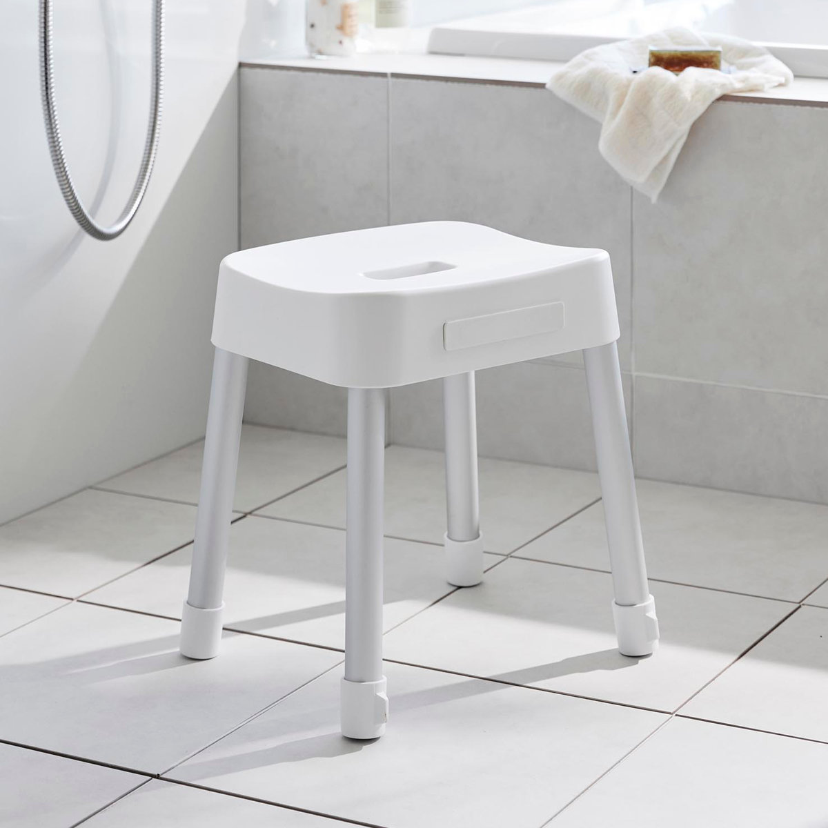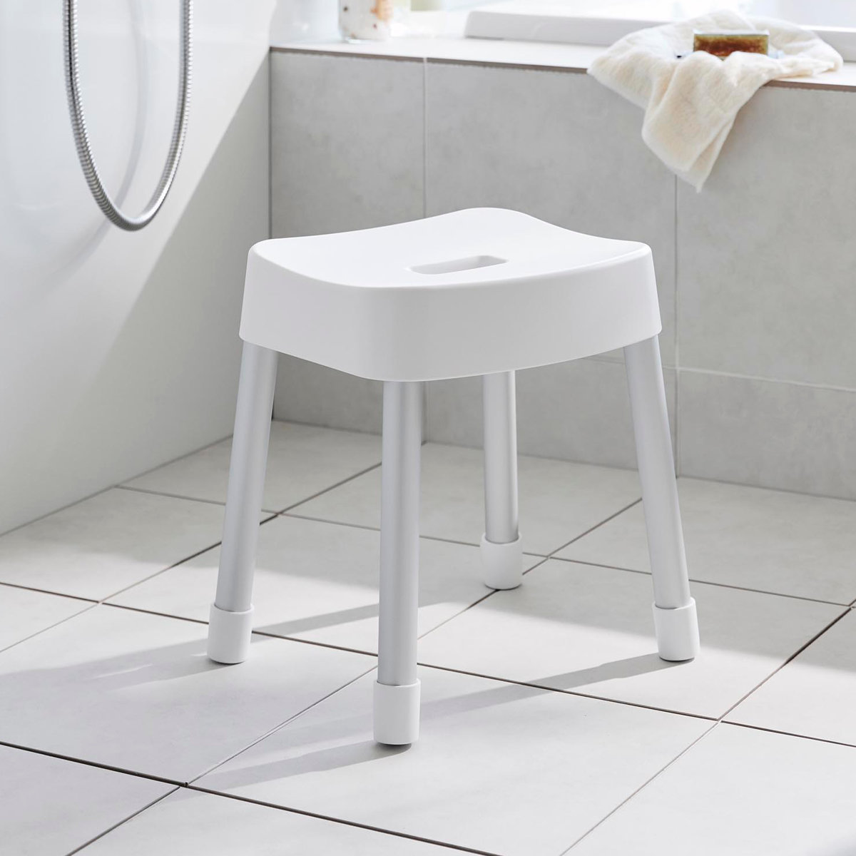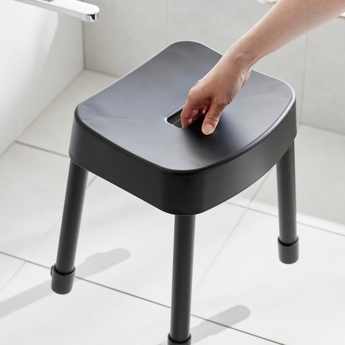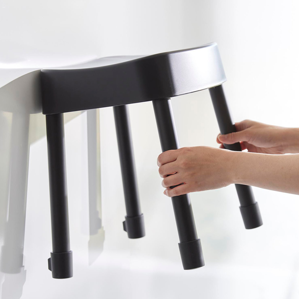 座面高40cmのハイタイプで、立ち座りがしやすく身体への負担を軽減します。アルミ製の丈夫な脚はシンプルなデザインで、通気性がよく乾きやすいです。脚の裏にはキズ防止の滑り止めが付いています。