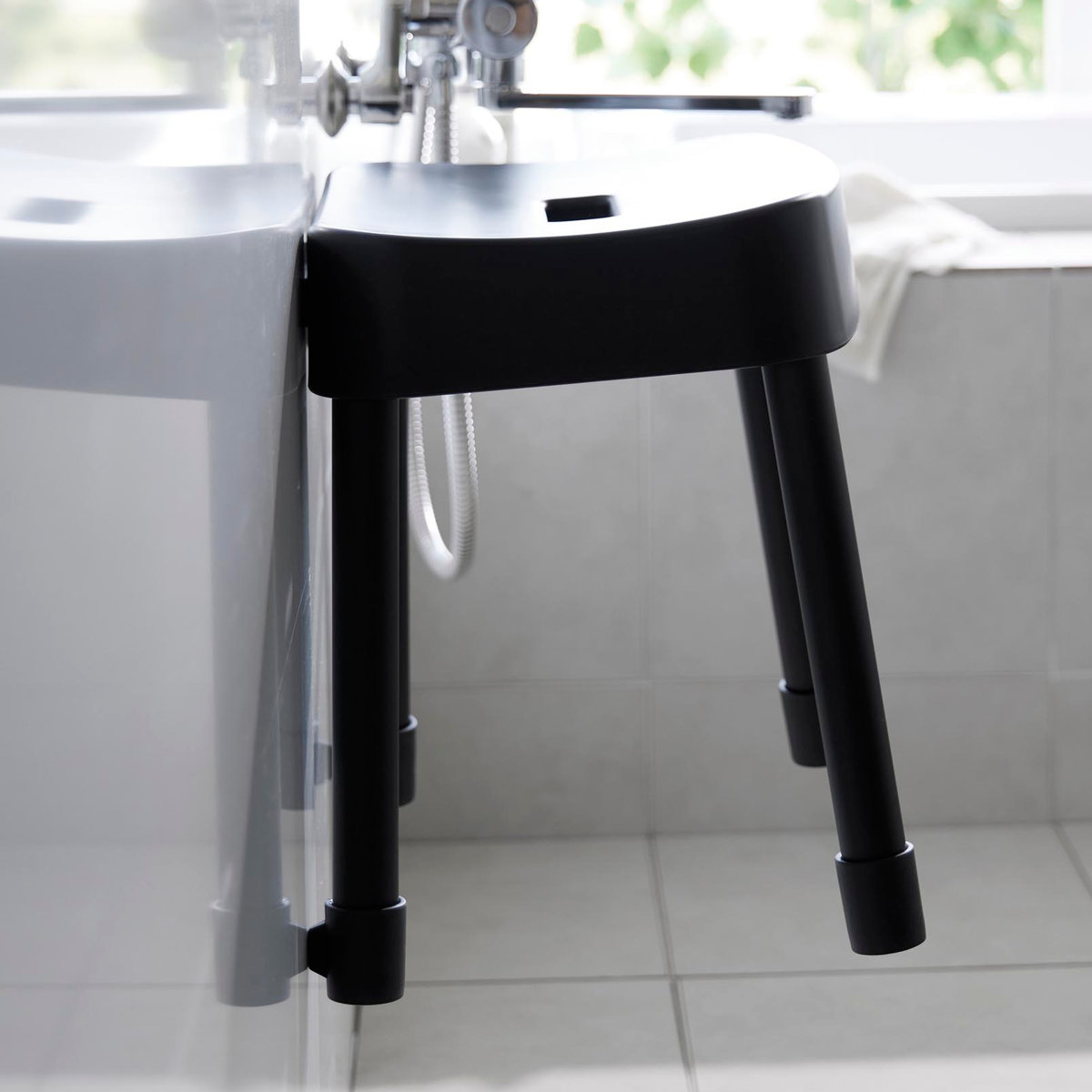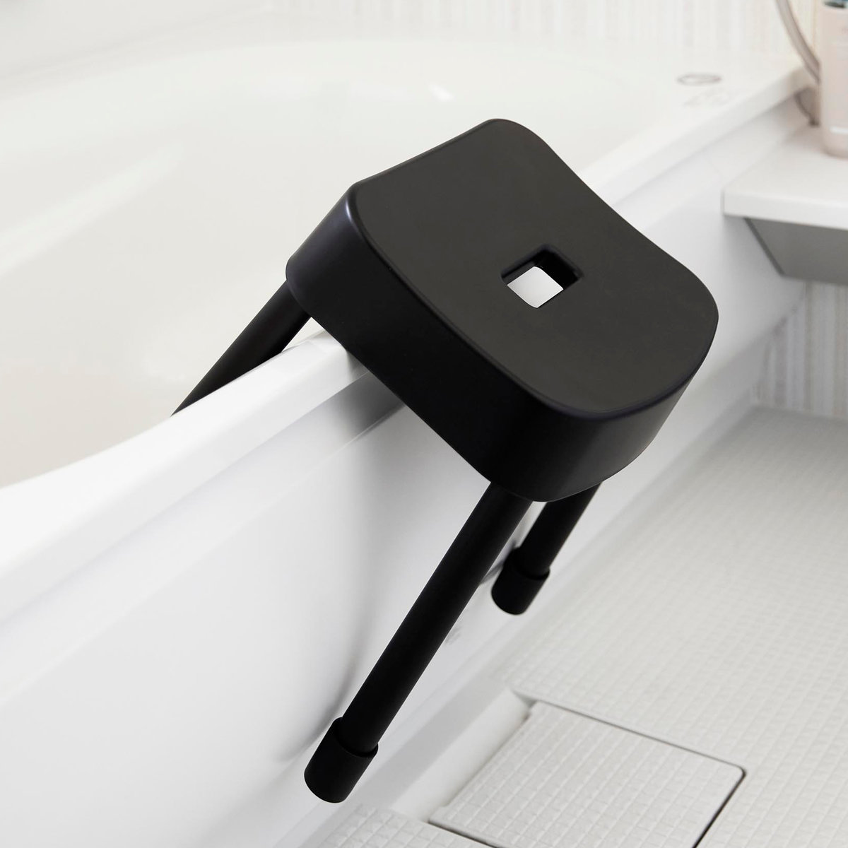 マグネットが使えない浴室でも、バスタブの縁に掛ければ直接床に置かずに乾かせるので衛生的です。