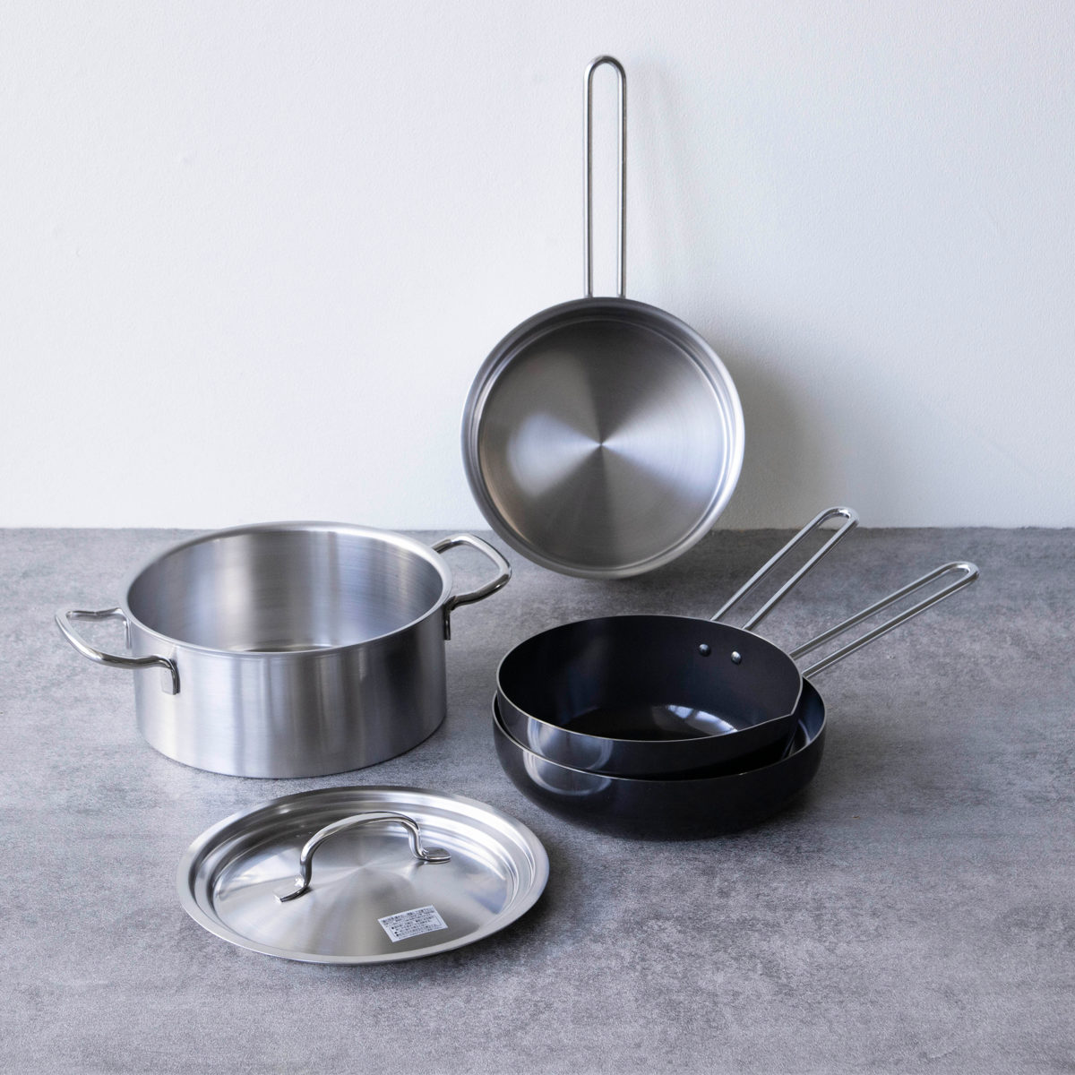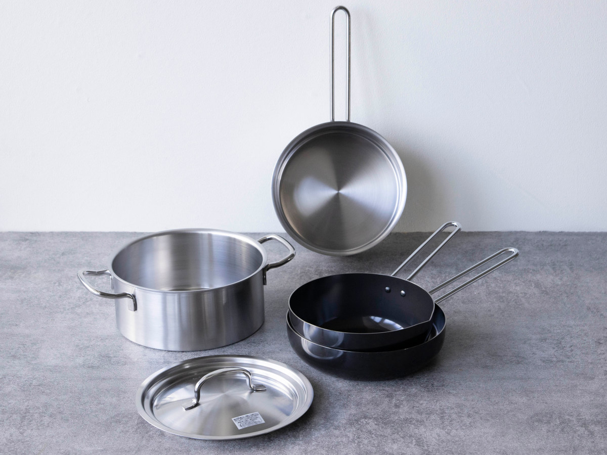 日本を代表する金属加工の一大産地、新潟県燕市で丁寧に作られた、フライパン・いため鍋・片手鍋・両手鍋・蓋のセットです。