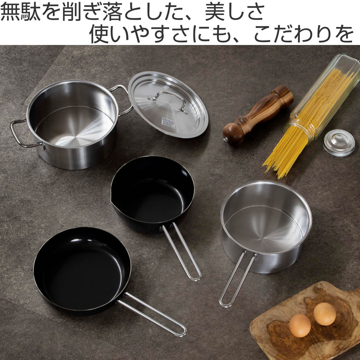 シンプルで洗練されたデザインが魅力の鍋セット