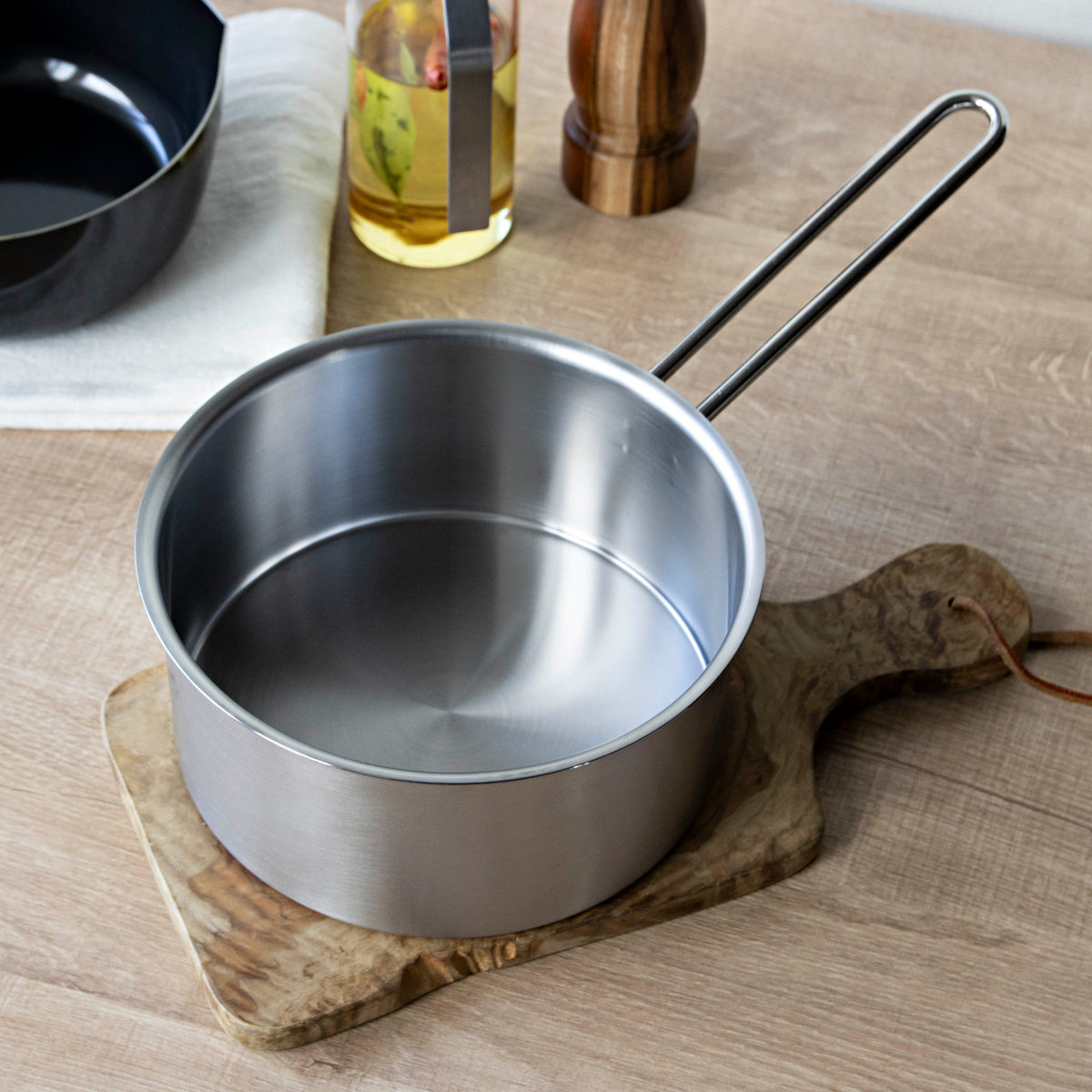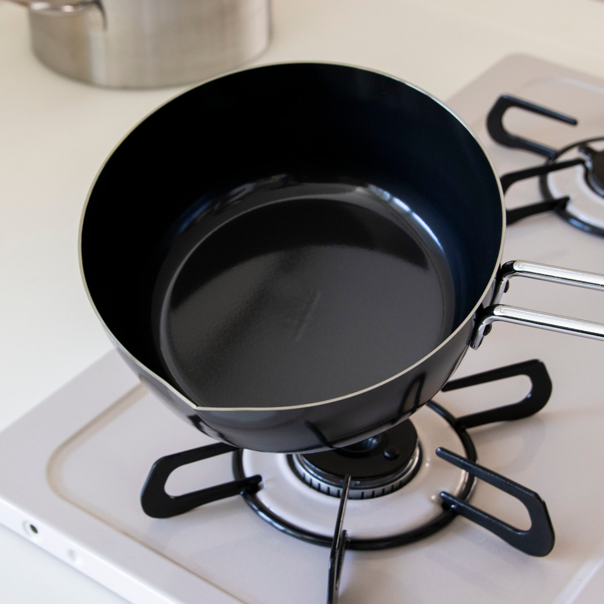 片手鍋は、フチ全体に緩やかなカーブを施し、どこからでもスムーズに注げる利き手を選ばない設計です。