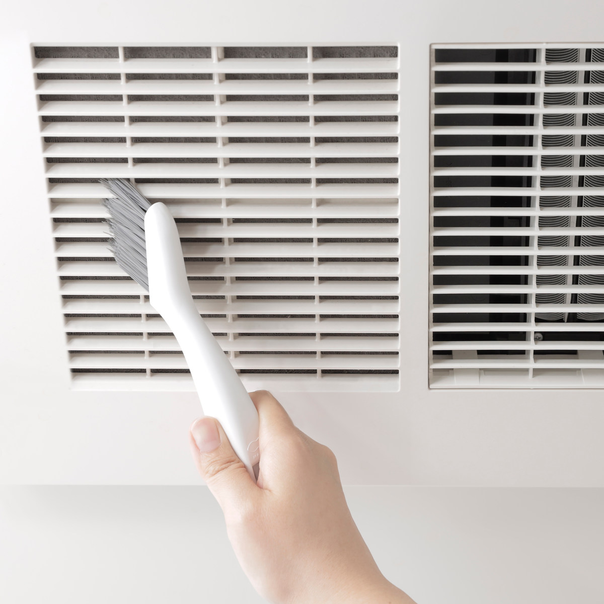 汚れをかき出せる角度のついたVカットブラシで磨き上げます。エアコンの吹き出し口など細かい部分のお掃除にも便利です。