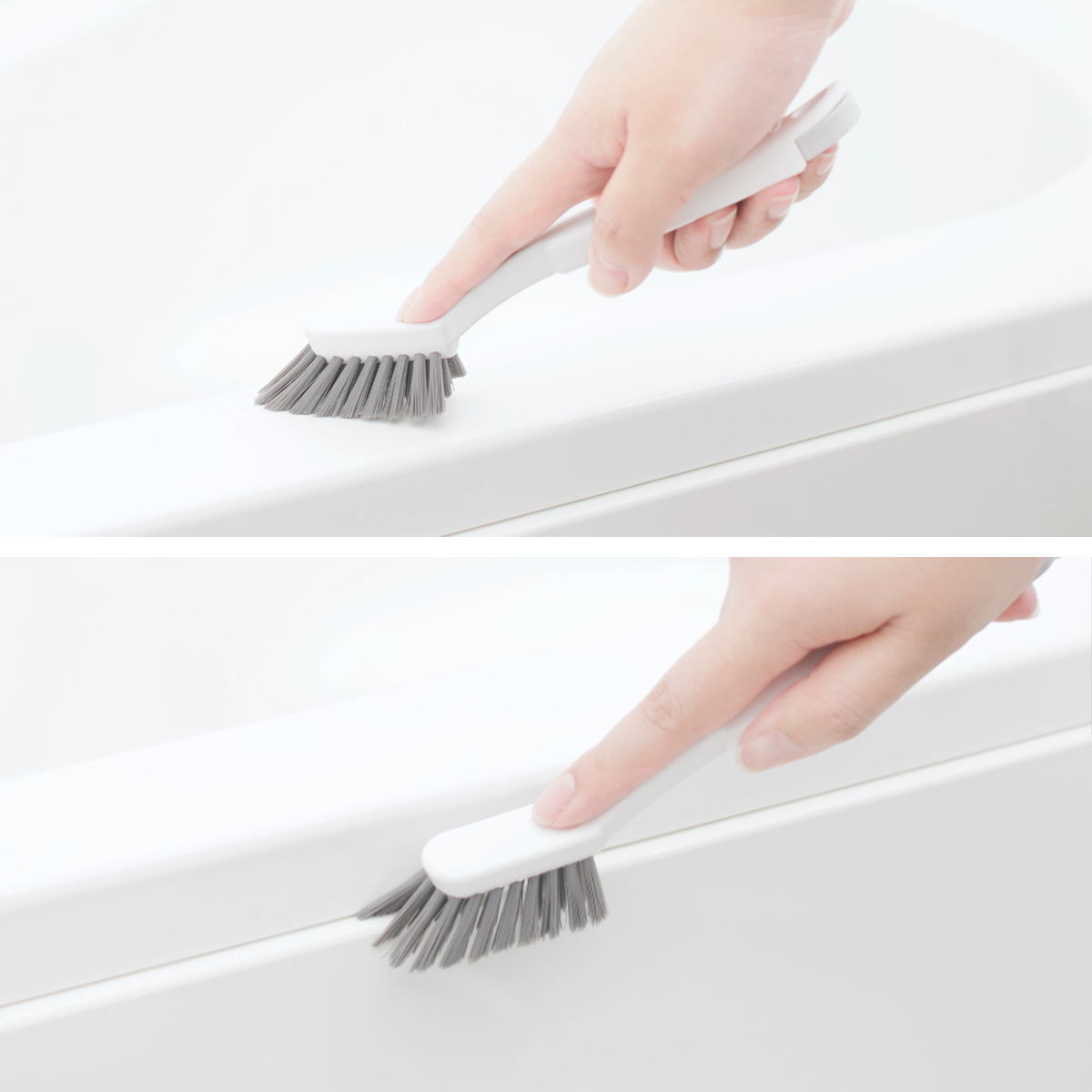角度のついたブラシがすみずみまでスッキリ洗えます。排水口や蛇口まわり、浴室小物のお掃除に使えます。カーブが付いた柄は持ちやすく洗いやすい形状です。滑りにくく力が入れやすい指おさえ付きなので濡れた手でも使いやすいです。