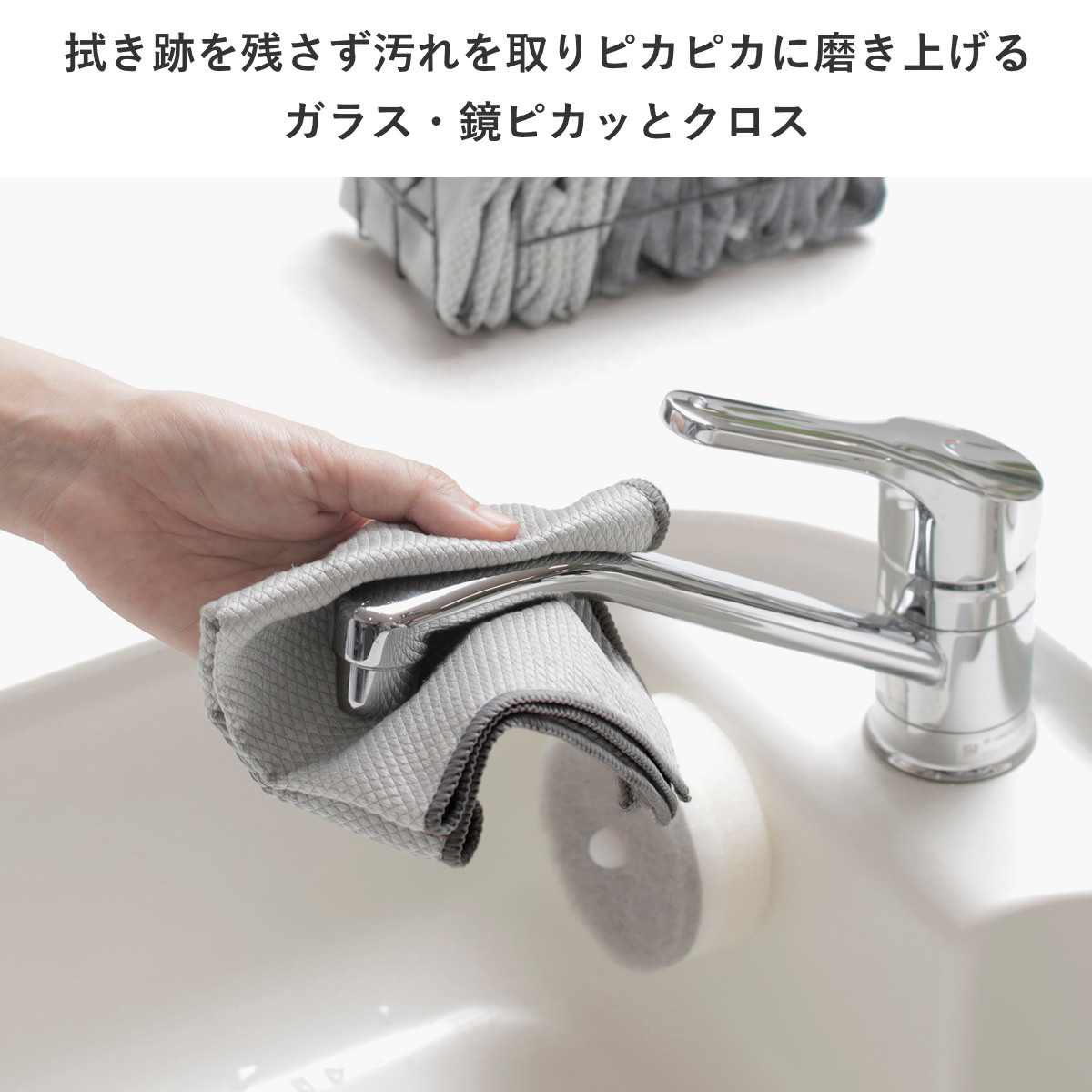 ガラスや鏡の水アカ・手アカ、蛇口の磨き上げにピッタリなクロスです。拭き跡を残さずピカピカにします。