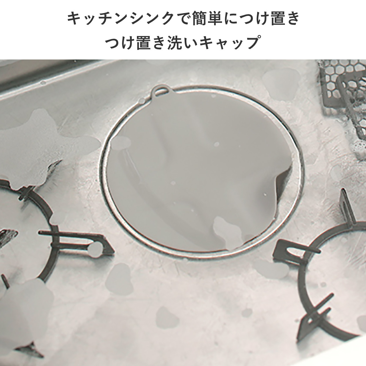 つけ置き洗いが簡単にできるキャップ