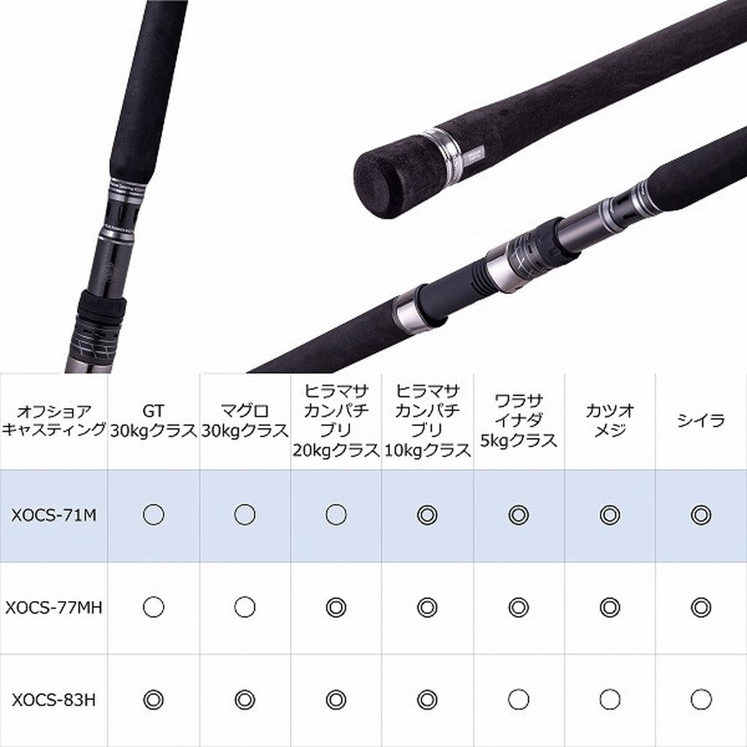 全魚種対応、あらゆるソルトウォーターゲームにマッチするロッド、『ソルティーステージ』が10年ぶりのフルモデルチェンジ。ハイエンドモデルにしか使えなかった、アブガルシア独自のブランクス製法、TAF(Triarchy Force)製法を採用。国産カーボン100%、完全無塗装のブランクスには、FUJI SiC‐S ガイドを搭載した。遠くのナブラを撃つキャスタビリティ、一日中ルアーを操作し続けられる操作性、 弾丸のように走る青ものを抑え込むパワーを合わせ持ったオフショアキャスティングモデル、XOCS-71M。 7フィート1インチのショートレングスの、シイラやカツオをターゲットにした近海バーサタイルモデル。取り回しのよいショートレングスで、トゥイッチ、ジャーク、ドッグウォークなど、テクニカルな操作をアシスト。小型メタルジグからトップウォータープラグ、シンキングミノーなどあらゆるルアーに対応。ミディアムアクションながら、メーターオーバーのシイラや10kgクラスのヒラマサ、ブリなどの青ものにも対応。