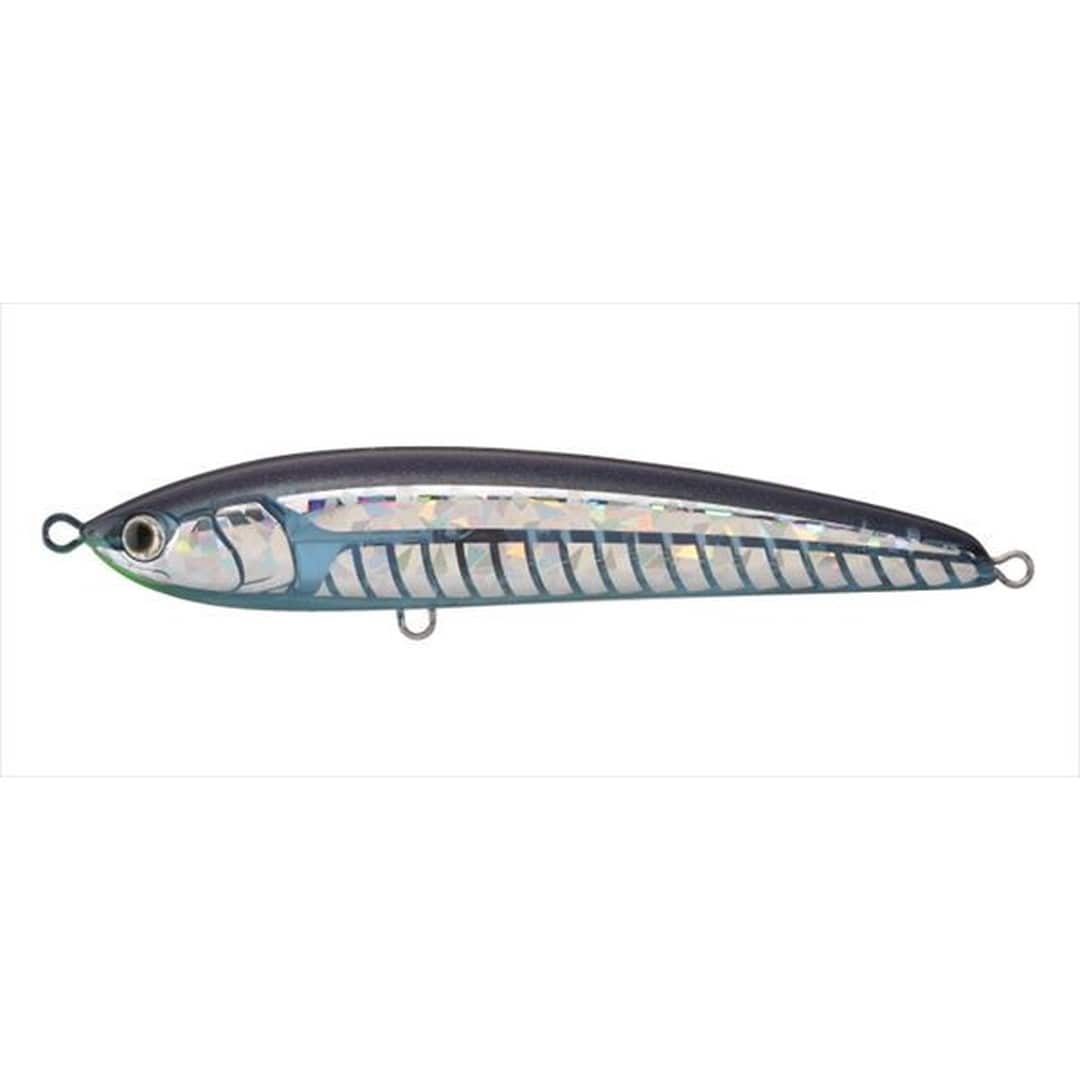 デザインホロによるケイムラ発光+フラッシングによる新感覚アピールに加え、ベリー部に採用したグロー夜光による発光カラーは、曇天では特に有効になる。見切られる前に喰わす!高速リトリーブ対応ペンシル「レガート」。マグネット重心移動によりキャスト時は「カチーン!」とリア重心となり、安定した飛距離で広範囲をサーチ。着水後はセンター重心に戻り、水平に近いスイム姿勢は高速リトリーブに対応し、トビウオやサンマなどの水面で動きが速いベイトを捕食しているときや、日中・ベタ凪時の警戒心が高まるタイミングに有効。