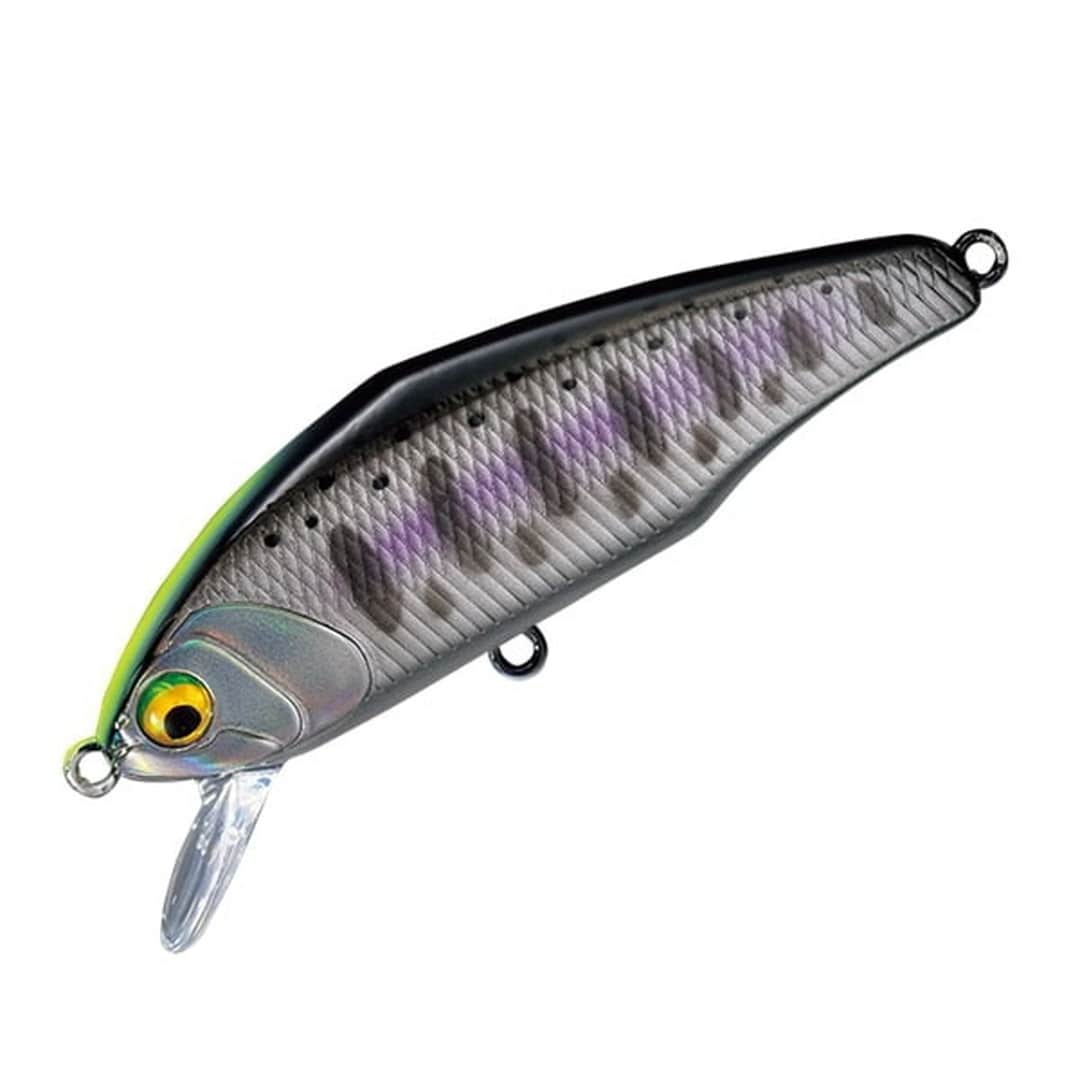 極薄フラットサイドボディが生み出すロール角の大きな慣性ヒラ打ちで喰わすこのミノーは、移動距離が短く、長時間のアピールが可能。D-コンタクト50より20cm程度深いレンジを、高速リーリングによる振動を携えてトレースできます。 キレと水噛みに優れた高強度の薄いリップは、アップ~ダウン、トロ場、荒瀬、小渓流の小さなスポットなど様々なロケーションやフィールドに全て対応するとともに、その空力特性はボディーデザインと重心バランスによりバラつくことなく、気持ちの良い伸びのある大きな飛距離を獲得できます。