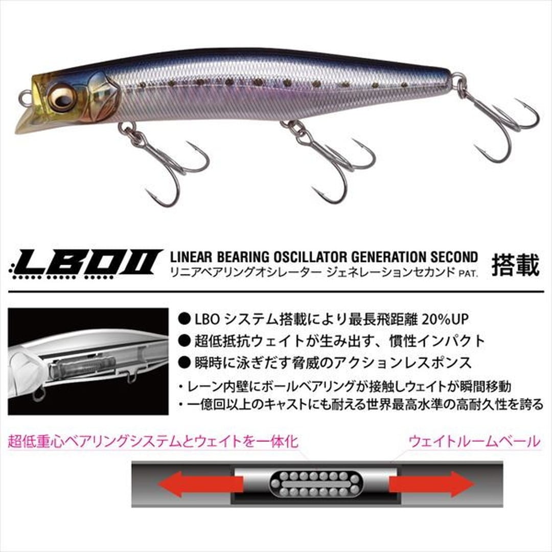 KGELOU MD 125Fはカゲロウシリーズに更なるレンジ展開を広げるミッドダイブモデルです。独自のスポイラービルは、捕食レンジにシビアなモンスターを果敢に反応させるため、最大0.8mの絶妙なフィーディングレンジを捉え、KGELOU124Fのターゲットレンジよりも一段下層の展開を攻略としています。また、強化したダイビング・スタビリティによって、荒れた波風や潮流による水面からの飛び出しを完全に抑え、外洋の磯場やサーフなどラフな環境にも対応。ロングゾーンで瞬間移動するLBOⅡPAT.を搭載し、従来の同サイズルアーの平均的飛距離を格段に凌駕する、超・長距離飛行を実現。卓越したロングキャスタビリティはタフなフィッシュイーターを確実に射程圏内に収めます。圧倒的な攻撃領域を持ち、タフな状況になるほど優れた釣獲性能を発揮するリップレスミッドダイバーがKGELOU MD 125Fです。