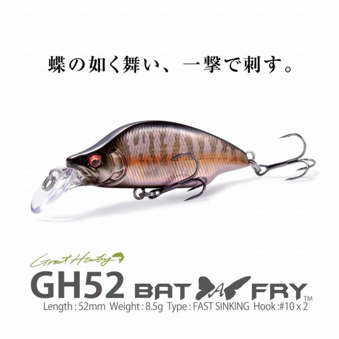 GREATHUNTING「バタフライ」シリーズは、渓流ミノーの規格をくつがえす、圧倒的高質量を極小サイズの超ウルトラスリムボディで実現。異次元からやってきたウルトラヘビーシンキングミノーです。これまでのシンキングミノーとは違う、アグレッシブに動ける超・高比重ボディは、激流のボトムへ瞬時に到達。ビッグトラウトの高い反応を得る、カウントダウンから素早く立ち上がり駆け上がるアップライズリトリーブ、淵底エグレゾーンへのコンタクト、トゥイッチを多用するトリッキーなコーシングなど、タフな大型渓魚を確実に覚醒させるあらゆるリアクションアプローチをダイレクトに展開。伊東独自のハイドロダイナミクスをフィードバックした独特なボディ形状は、圧倒的明滅を生み出し、あらゆる流速の水を確実に掴むオフセットビルは、激流のアップクロスでも即座にアクションが立ちあがる俊敏性を発揮。激しく鮮やかに舞い踊る「バタフライ」独自の鋭敏なハイピッチロールアクションは、難攻不落の女王を深い眠りから目覚めさせるのです。