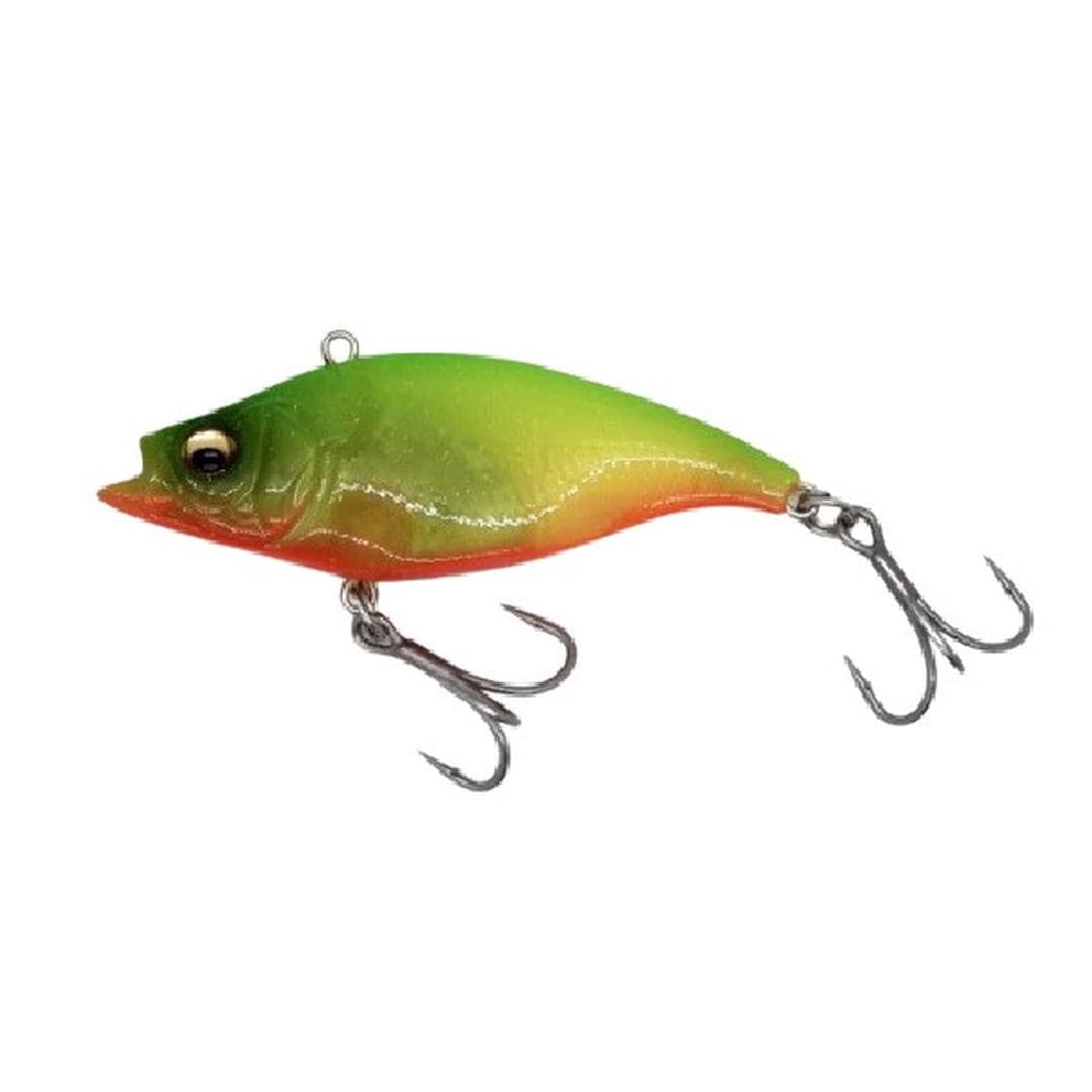 従来のバイブレーションは、ヘッドもしくはボディ全体で水流を受けてアクションするため、スイム姿勢が前傾になります。ルアーよりも下のレンジから喰い上げたり、横から前方に回り込んでバイトすることが多いシーバスは、前傾スイムのバイブレーションだとヘッドやボディが障害となり、ミスバイトやフッキングが甘くなりがち。カットバイブ独自のホリゾンタルマウスは、スイミング時の姿勢を水平に保ち、フロントフックへのフッキング率を高め、ミスバイトやバラシを激減させています。アクションは、超ハイピッチ・タイトバイブレーション。セレクティブなシーバスにも違和感を与えないカットバイブは、スローでもファストでも、あらゆるリトリーブスピードにおいて高いレンジキープ力を発揮します。