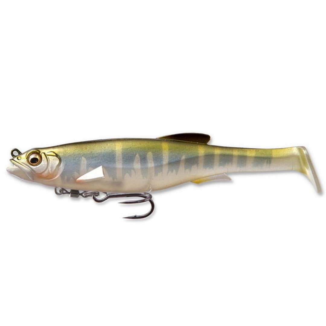 マグドラフトはスロー、ファストどちらでも、安定したリトリーブが可能なスイムベイト。アクションはウォブンロールを基本に、一般的なスイムベイトよりもややハイピッチに動きます。また、ベリー部のスリットとメガバス独自のマグホールドシステムでフックをボディへ密着。フックの存在感をカモフラージュし、魚への違和感を解消しています。