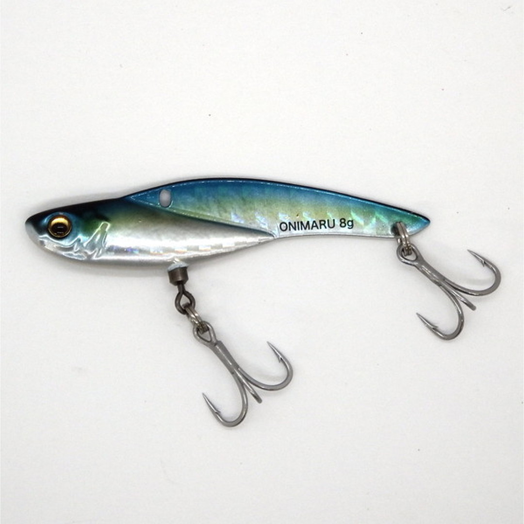 オニマルは海洋魚類の行動学による研究とテストの経験則によって、特別なバランスセッティングが施されたメタルバイブレーションの最終回答。逃走する鰯が見せるボディのレイラインをくっきりと浮かび上がらせることで、線視力に優れたシーバスや青物から最も捕食対象とされやすい、「被捕食体」としての要素をクローズアップさせています。逃走する小魚のシルエットを忠実にイミテートした水平スイミング姿勢は、いかなる速度においても一定のロール軸を保持、生命感あふれるハイピッチバイブレーションを発生し、フィッシュイーターの捕食本能を猛烈に刺激。スイベル化したフロントアイは、ファイト中の捻りやエラ洗いへの追従性を向上させ、バラシを大幅に軽減化。さらに、ラインアイポジション、フックポジション、ボディ形状、ウエイトなど、トータルバランスを突き詰めた設計により、ラインやボディへのフック絡みのトラブルを徹底的に抑えています。シーバスはもちろん、クロダイやフラットフィッシュ、青物など、あらゆるターゲットにアジャストする究極のサーチベイトです。