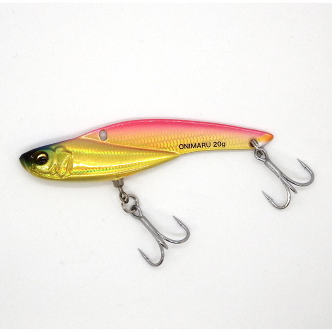 オニマルは海洋魚類の行動学による研究とテストの経験則によって、特別なバランスセッティングが施されたメタルバイブレーションの最終回答。逃走する鰯が見せるボディのレイラインをくっきりと浮かび上がらせることで、線視力に優れたシーバスや青物から最も捕食対象とされやすい、「被捕食体」としての要素をクローズアップさせています。逃走する小魚のシルエットを忠実にイミテートした水平スイミング姿勢は、いかなる速度においても一定のロール軸を保持、生命感あふれるハイピッチバイブレーションを発生し、フィッシュイーターの捕食本能を猛烈に刺激。スイベル化したフロントアイは、ファイト中の捻りやエラ洗いへの追従性を向上させ、バラシを大幅に軽減化。さらに、ラインアイポジション、フックポジション、ボディ形状、ウエイトなど、トータルバランスを突き詰めた設計により、ラインやボディへのフック絡みのトラブルを徹底的に抑えています。シーバスはもちろん、クロダイやフラットフィッシュ、青物など、あらゆるターゲットにアジャストする究極のサーチベイトです。