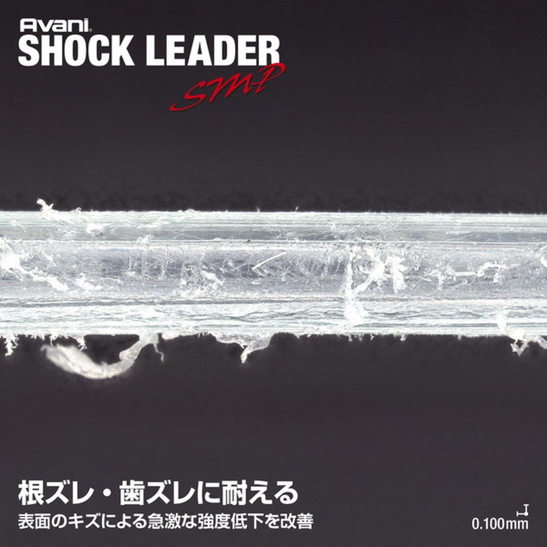 耐えて獲る!!夢を叶えるための新たな選択好敵手の強烈な疾走や根の擦れにも高い耐久性と粘りで耐え勝つ。素材の見直しと製法の改良により誕生した「アバニ ショックリーダーSMP ナイロン」。従来品同様の強度を保持しつつ伸び率を最適化。高負荷時のファイトや魚を止める時など驚異の粘りでアングラーをサポートします。素材を見直すことで摩耗時の急激な強度低下を改善。根回りなどの攻防を有利にします。特殊加工「N O N 」と「N D - S 」により『しなやかさ』と、季節の温度変化や吸水による『経時劣化』の大幅な改善に成功。太号数でもしっかり留まり、残量に応じて締め直しが可能。