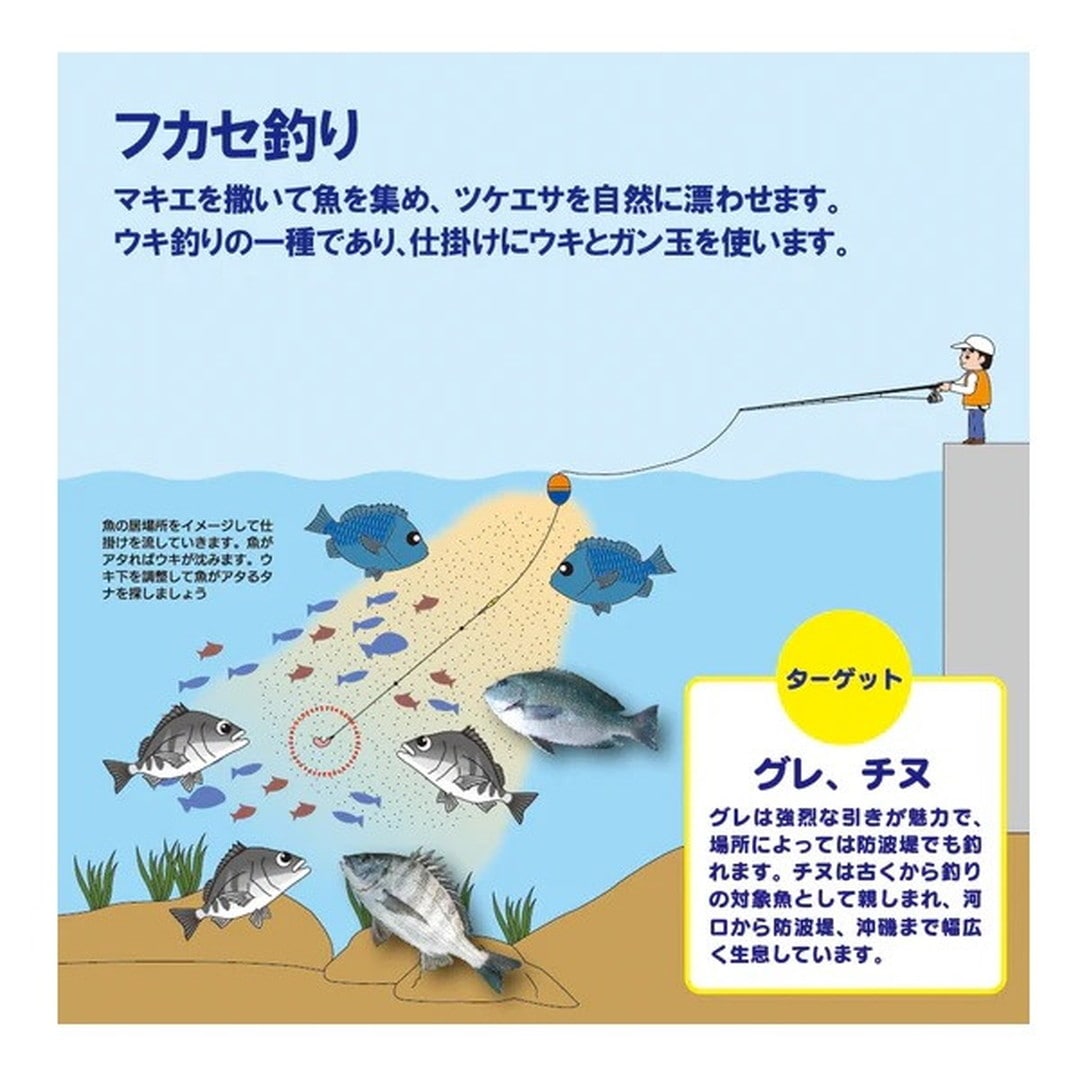 上層から下層までタナを幅広く探るタイプの集魚材です。比重差のある具が上層より徐々に沈下、沖あみミールがその後からジワ-ッと広がり、魚の視覚・嗅覚を刺激、マキエゾーンの中に誘い込みます。チヌ、グレ、その他、対象魚を選ばない沖あみパンです。