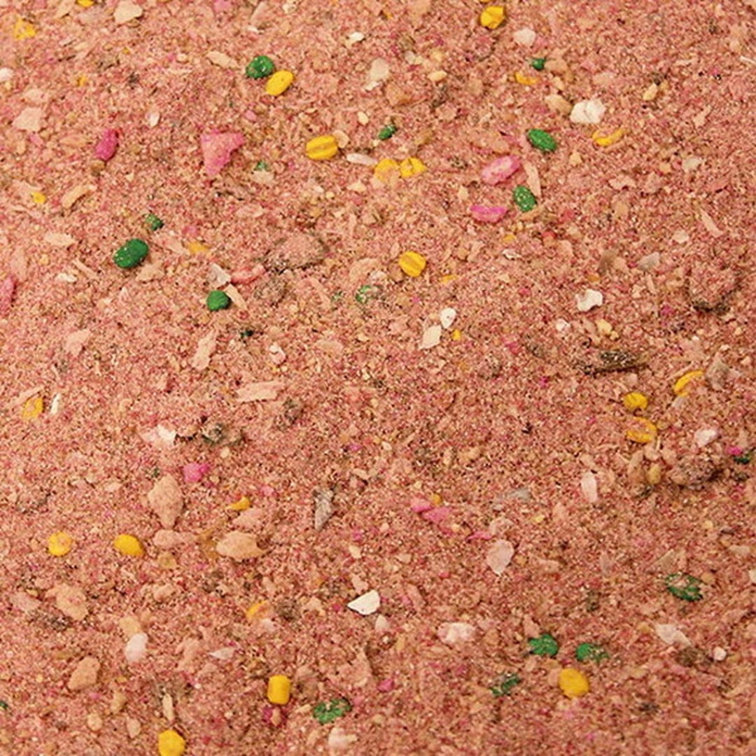 具材:黄麦・緑麦(小粒)・赤パン粉・パン粉粗目・カキガラ・カルシウム・オカラ・フルーツフレーバー他配合