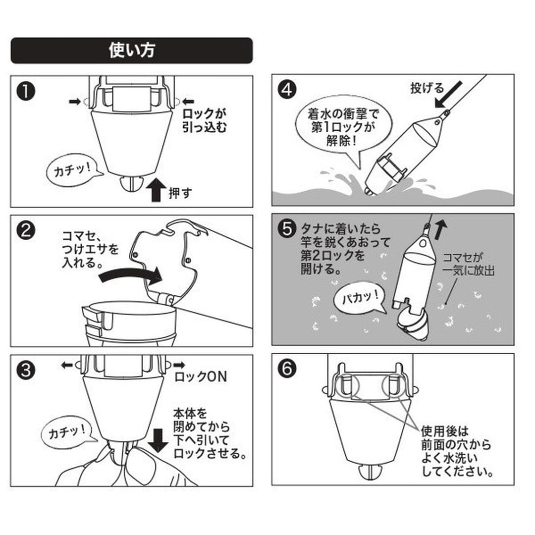 2段式のロック機構を、すべて機体内にビルトインした一発カゴ。ロックした状態で遠投し、海面に着水すると第1ロック解除。竿をしゃくると第2ロック解除。機体外周に突起がないので遠投性能が飛躍的に向上。糸絡みを防ぎます。2本バリ対応スリット2か所。
