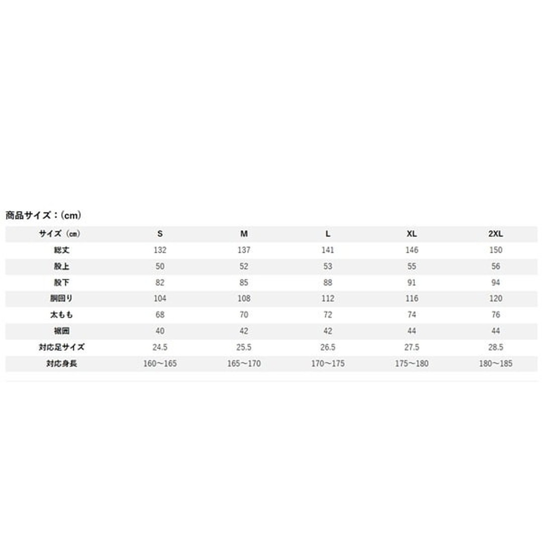 サイズ:L(総丈141cm、股上53cm、股下88cm、胴回り112cm、太もも72cm、裾囲42cm、対応足サイズ26.5cm、対応身長170-175cm