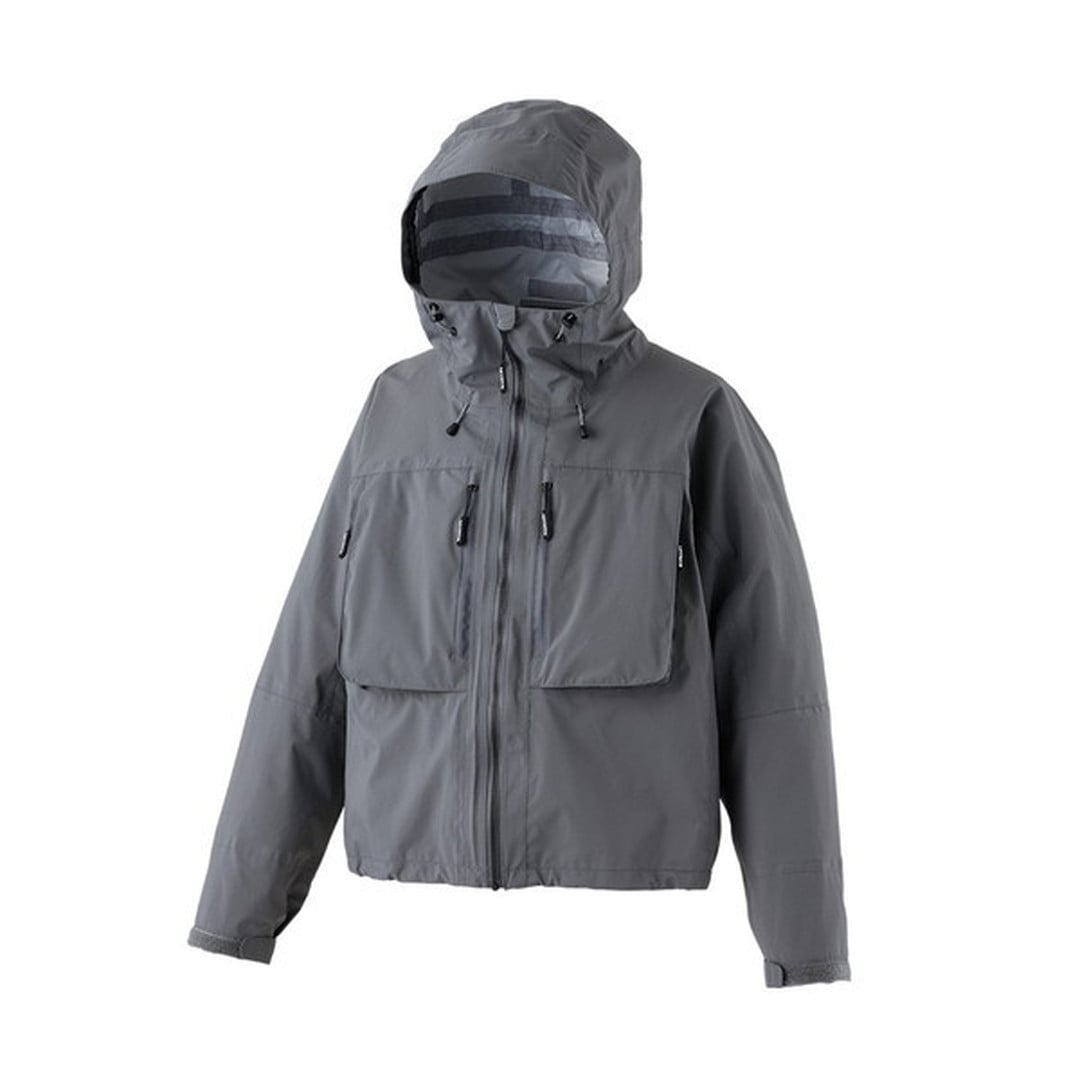 多機能ウェーディングジャケット。フィッシングベストの機能を持ち合わせた透湿レインジャケット。本体は軽量ナイロン3レイヤー素材(aquamaxSUPREME透湿防水加工)。気温、湿度が高くなる時期や長距離移動時にもレイン内部の快適性を保つ透湿素材を使用。フロントファスナーは優れた止水性、錆や腐食に強いYKK AquaguardVISLONを使用。左右の大型胸ポケットは分別収納が可能な2気室仕様。明邦VS-906(SFCマルチL)サイズが収納可能。左右ポケット内上部にハンガー用Dカンを配置、小型ランディングネット保持用背面Dカン付き。