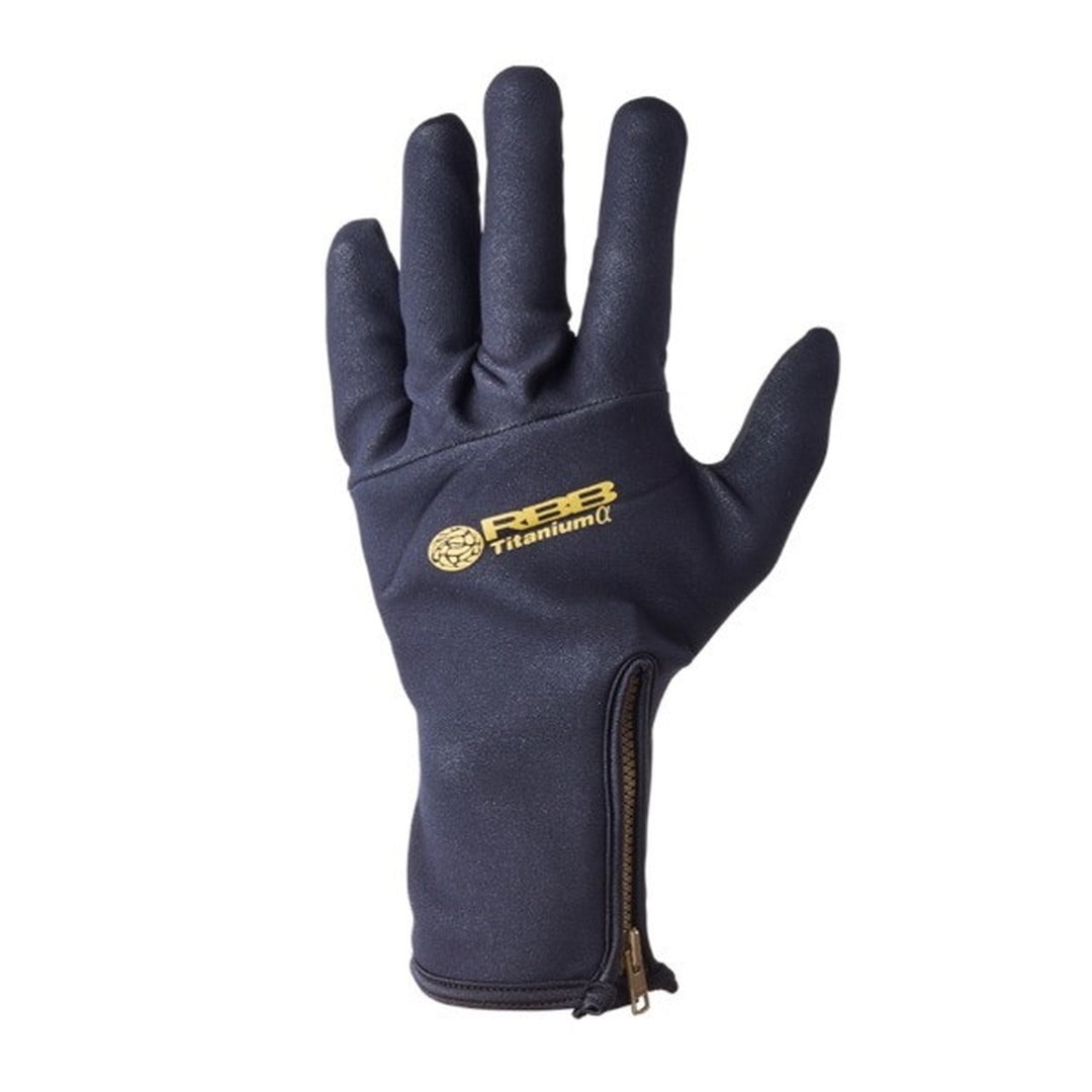 厳しい環境下でも着脱が容易に行えるファスナーを採用。親指と人差し指は擦り切れを軽減する合成皮革を使用したフルグローブ。通常のクロロプレンに比べ約40%保温力アップ。チタン合金の超極薄フィルムをサンド、トリプル構造。手首は長めの設計で保温力抜群。掌、手の甲側は共にタイタニュームα加工生地を採用。メイドインジャパン。