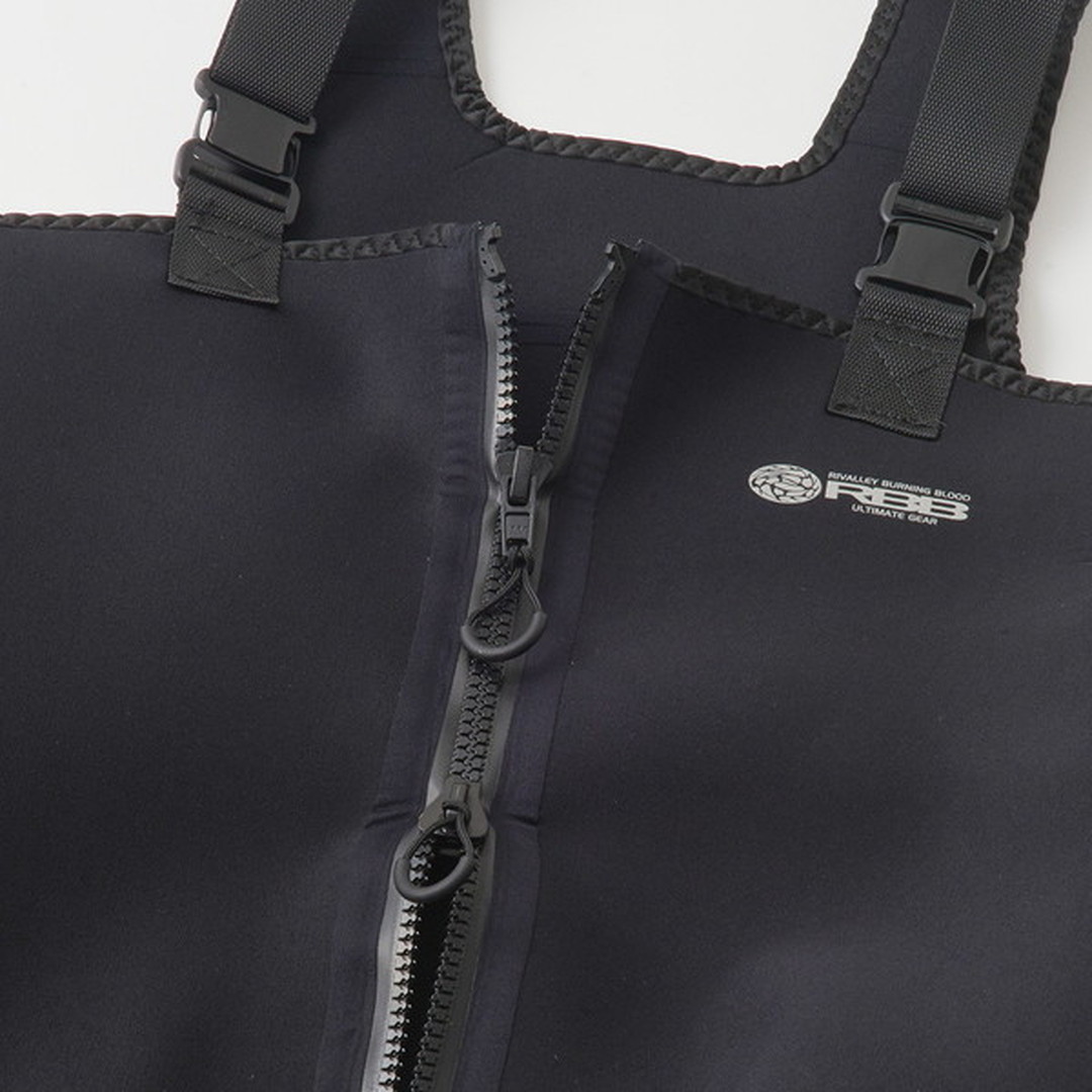 完全防水フロントZIP付き防寒ウェーダー。YKK「アクアシール」防水ファスナーを採用したフルオープンウェーダー。着脱、移動時の体温調整など様々な快適性を追求したダブルスライダー仕様。保温力はもちろん耐久性と柔軟性を兼ね備えた5mm厚クロロプレン素材を使用。ブーツ内部にも5mm厚クロロプレンを使用し足先の保温力をキープ。ブーツトウ部分の補強は水圧による足への圧迫を軽減。ソールはグリップ力と耐摩耗性を両立したフェルトピン仕様。低水温時の過酷なウェーディングゲームをサポートする防寒ウェーダー。長きに渡りウェーダーを創り続けた双進が自信を持ってお勧めするフラッグシップモデル。