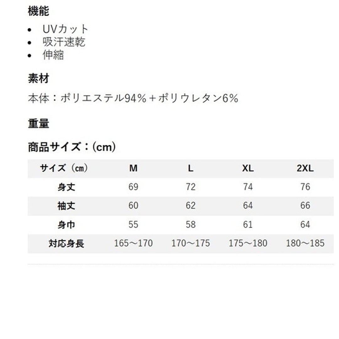 紫外線をシャットアウトフードとフェイスマスクを一体化した紫外線対策パーカー本体は肌触りの良い吸水速乾ストレッチ素材マスク部にはメッシュ素材を使用し眼鏡の曇りを防止袖裏から脇下は通気性の良いメッシュ素材錆や腐食に強いビスロン(樹脂)ファスナーポケット動きに干渉しないゆったりとしたサイズ設定日焼けにより体力消耗を軽減し、スリ傷等の怪我を防止