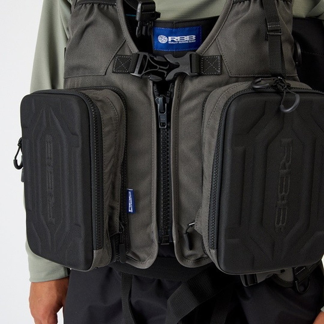 片手でのファスナー開閉がスムーズに行えるセミハードポケットを採用した限定モデルフィッシングスタイルに対応するマチ拡張機能付きフロントポケット意匠登録出願中通常時はロッドワークやリーリング時の妨げにならないスリムポケット(マチ幅約6cm)拡張時はVS-3010NDMが2枚ゆったり収納可能なワイドポケット(マチ幅約10.5cm)ファスナーは錆や腐食に強いビスロンファスナー本体は摩耗、引裂きなど耐久性に優れたコーデュラ素材ウエストサポーターは装着時に片手でのサイズ調整、増し締めが可能な片側固定シングルアジャスターバックル仕様肩パットのズレを防ぐサブハーネスにはホイッスル機能付きバックルを採用左胸にはスマートフォン動画撮影用ポケットを配置通気性を確保する背面ベンチレーション機能プライヤーをしっかりとホールドする成形樹脂内蔵プライヤーホルダー(着脱可能)ストレスフリーな可動式ドリンクホルダー(着脱可能)RBBダブルポケットポーチ、マルチポーチが装着可能な背面モールシステム。