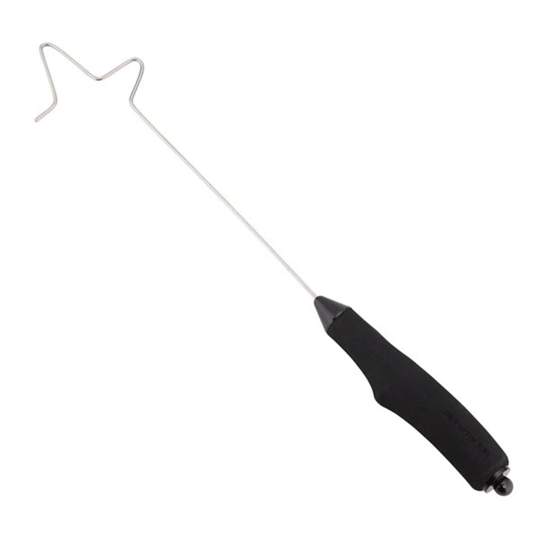 船釣りや管理釣り場で使える針外し。ワイヤーに針を外す凹みが2か所搭載されており、素早い針外しが可能。仕掛けを張りながらワイヤーの凹み部に針のふところをあて、クイッと針を引っ張ることで魚に触れずに簡単に針を外すことができる。