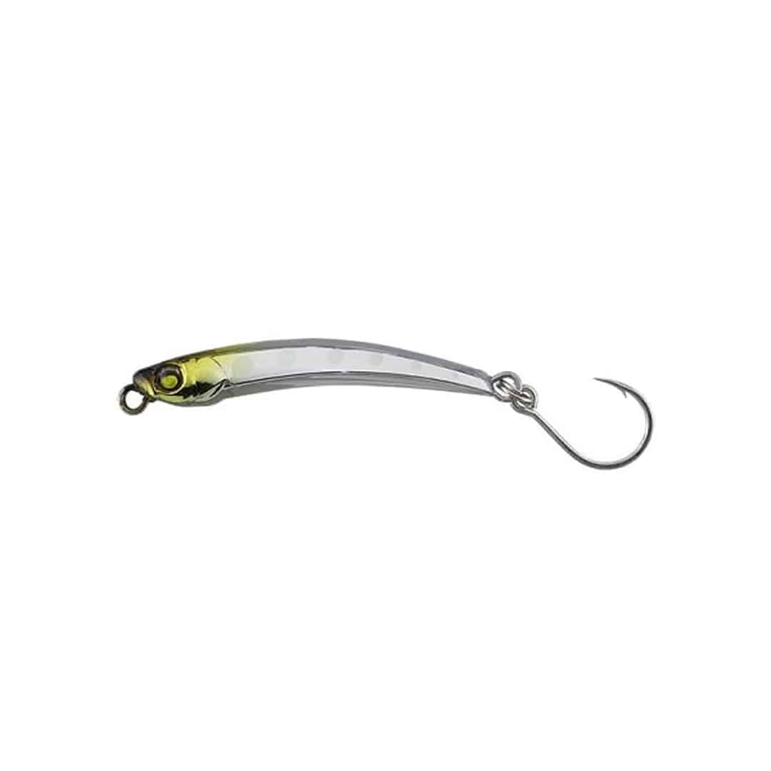 湾曲したボディが水を受け、高速回転アクションでアピール。小粒ながらもしっかりアピールしつつ、回転方向をランダムに変えるイレギュラーなアクションで、追ってきた魚に見切らせ難いのが特徴です。