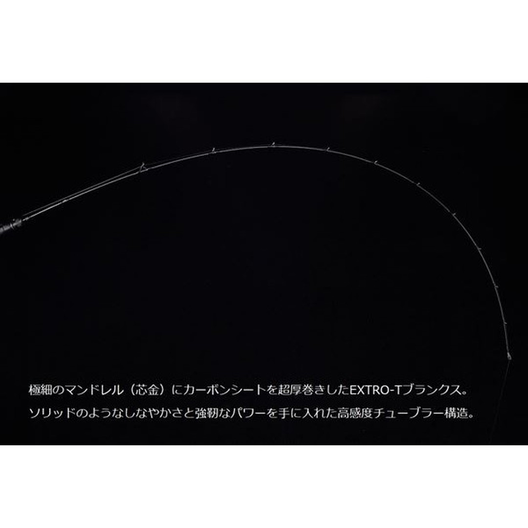 最先端の剛性と感度を融合した『タチウオ ジギング専用ロッド』しなやかで強靭なブランクを生み出すEXTRO構造。通常のチューブラー(中空)構造とは一線を画す超厚巻のローテーパー構造。先端直径がシャープペンシルの芯ほどの極細マンドレル(ロッドの芯材)に薄手のカーボンプリレグを多重に巻きつけて成形。剛性とトルクフルなパワーを実現しました。高弾性カーボン&チューブラ仕様により、適度な張りが加わることで感度も向上。ルアー操作時にジグが飛び過ぎないようにしなやか曲がり、絶妙な食わせの間を与えます。太刀魚専用メタルジグ「アンチョビメタル」TYPE ZERO、TYPE Ⅰ、TYPE Ⅱ、TYPE Ⅲに対応したラインナップでルアーとのマッチアップを体感して頂けます。1本あれば幅広く様々な海域で活躍する懐の深さがこのロッドの持ち味。バイトチャンスを作り出す適度な張りと高感度が特徴で、ジグのアクションを極力抑えたナチュラルな誘いから、フォールアクションを交えながら広い層を探る早めのジャークまであらゆるテクニックに対応します。
