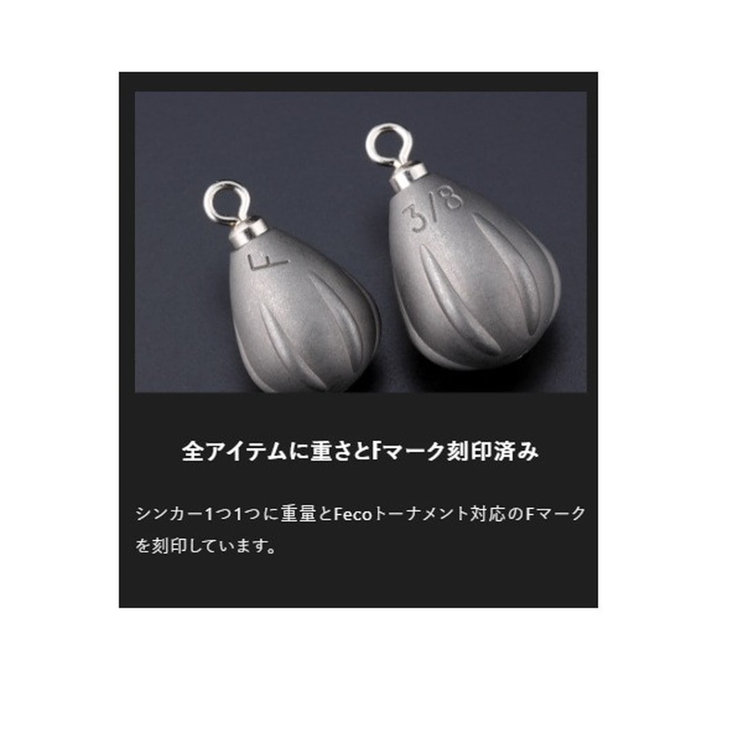 ●適度なスタック感を生み出すマイクロフィン。ティアドロップ形状(涙型)にマイクロフィンを搭載する事で、シンカーが意図せず転がらないため一点での誘いに効果的です。また、ボトムやストラクチャーに対して適度なスタック感(引っ掛かり感)を発生させ、リグの状態をアングラーが把握し易くなります。●テカリを抑えたマット仕上げ。違和感となり得るシンカーのテカリを抑えたマット仕様を採用しています。