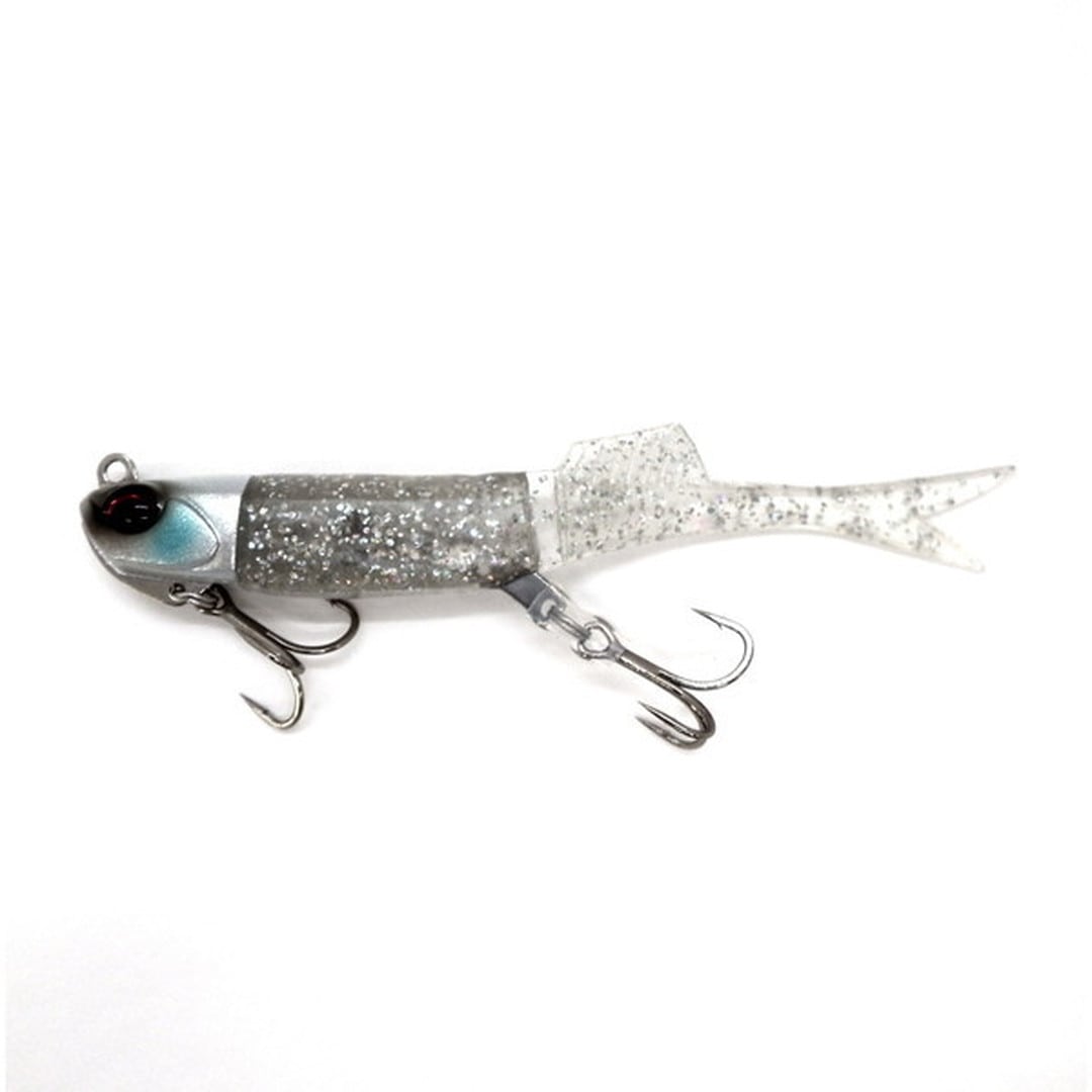 シャッド、グラブに続く第三の波動。小魚をイメージさせるスリムなシルエットと尾部の先割れフィン。そしてボディ中央の体節と背中のバイブスフィン(背ビレ)が、新しいハウルフィッシュの特徴 。薄い体節でボディを区切るだけでなく、 背中のバイブスフィンで水を受けることにより、後ろ半分が細かく高速微振動(バイブレーション)してヒラメを誘う。横流れを受けてターンする際は、体節より後ろが一瞬、大きく曲がって、アクションが変化して食わせに繋がる。ワームマテリアルを見直したことに加えて、体節からテールまでが薄い設計のため、テールがブレずに飛んで飛距離がアップ。同時に糸絡みも軽減。また体節により、後ろ半分が容易に折れ曲がり、バイトの際に魚の口に入りやすい。