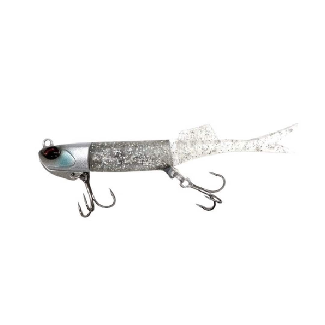 シャッド、グラブに続く第三の波動。小魚をイメージさせるスリムなシルエットと尾部の先割れフィン。そしてボディ中央の体節と背中のバイブスフィン(背ビレ)が、新しいハウルフィッシュの特徴 。薄い体節でボディを区切るだけでなく、 背中のバイブスフィンで水を受けることにより、後ろ半分が細かく高速微振動(バイブレーション)してヒラメを誘う。横流れを受けてターンする際は、体節より後ろが一瞬、大きく曲がって、アクションが変化して食わせに繋がる。ワームマテリアルを見直したことに加えて、体節からテールまでが薄い設計のため、テールがブレずに飛んで飛距離がアップ。同時に糸絡みも軽減。また体節により、後ろ半分が容易に折れ曲がり、バイトの際に魚の口に入りやすい。