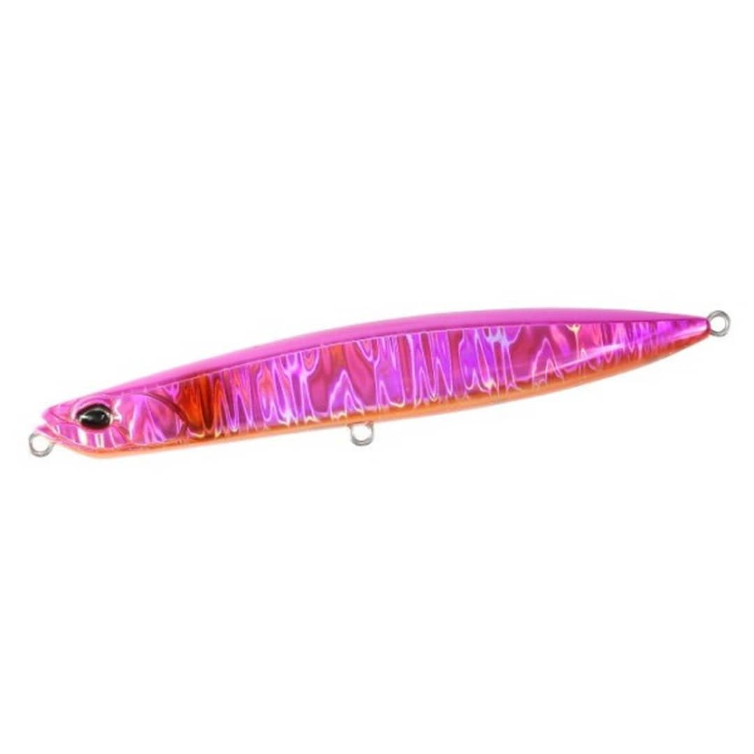 数多あるシンペンを再定義 ”確新”的ゲームチェンジャー。新しい動きを兼ね備えたシンキングペンシルが、ついに完成。スローリトリーブではボディを細かく震わせる"シミーロール"を発動。巻き速度を早めれば、ボディ後方が左右へスイングする。沈下姿勢は水平を保ちながら、ややバック気味へのシミーフォール。またセンターに近い重心ながら誰でも投げやすいセッティングを実現。これらはフラットサイドボディと計算されたウェイト配置に由来。そう、従来のシンペンを変革するルアーこそが、チェンジャー105Sなのだ。