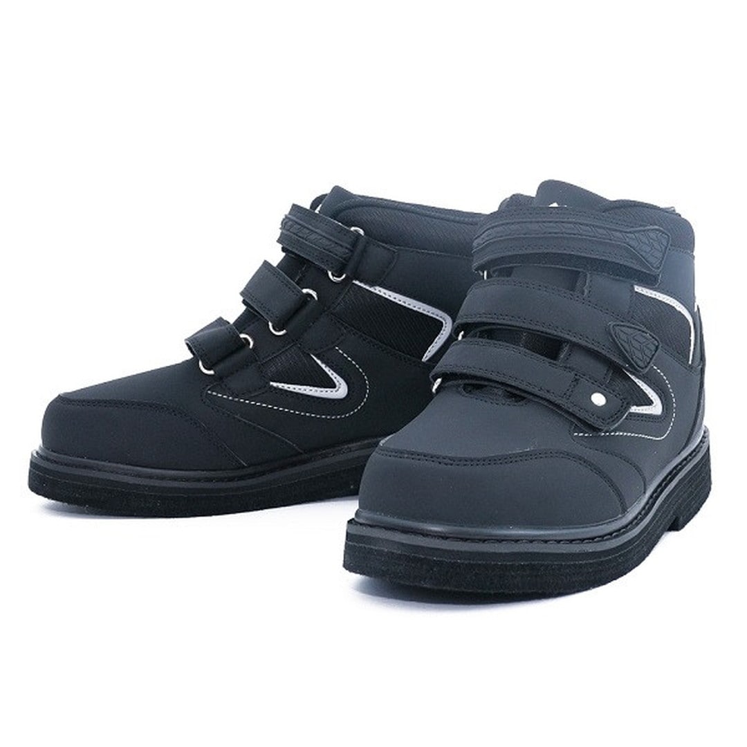 3本マジックバンド仕様で、脱着が簡単。日本メーカーによる日本人に合った幅広ソールとフィット感を追求した設計。スタイリッシュなデザインのブラック杢柄、マジックバンドにより優れたフィット感。フェルト底のスパイクピンは、藻や海苔の付着した滑りやすい地面や岩場をしっかり捕らえ、岩場や川岸での移動や立ち上がりがスムーズ。履き口からつま先まで柔らかいクッションを挟み込み、足の動きをサポートし長時間の釣りでも足の疲労を軽減。アッパー素材は耐水性と速乾性に優れ、型崩れしにくい合成繊維を使用。中敷きのカップソールは通気性の良いメッシュ素材を使用し快適な履き心地。