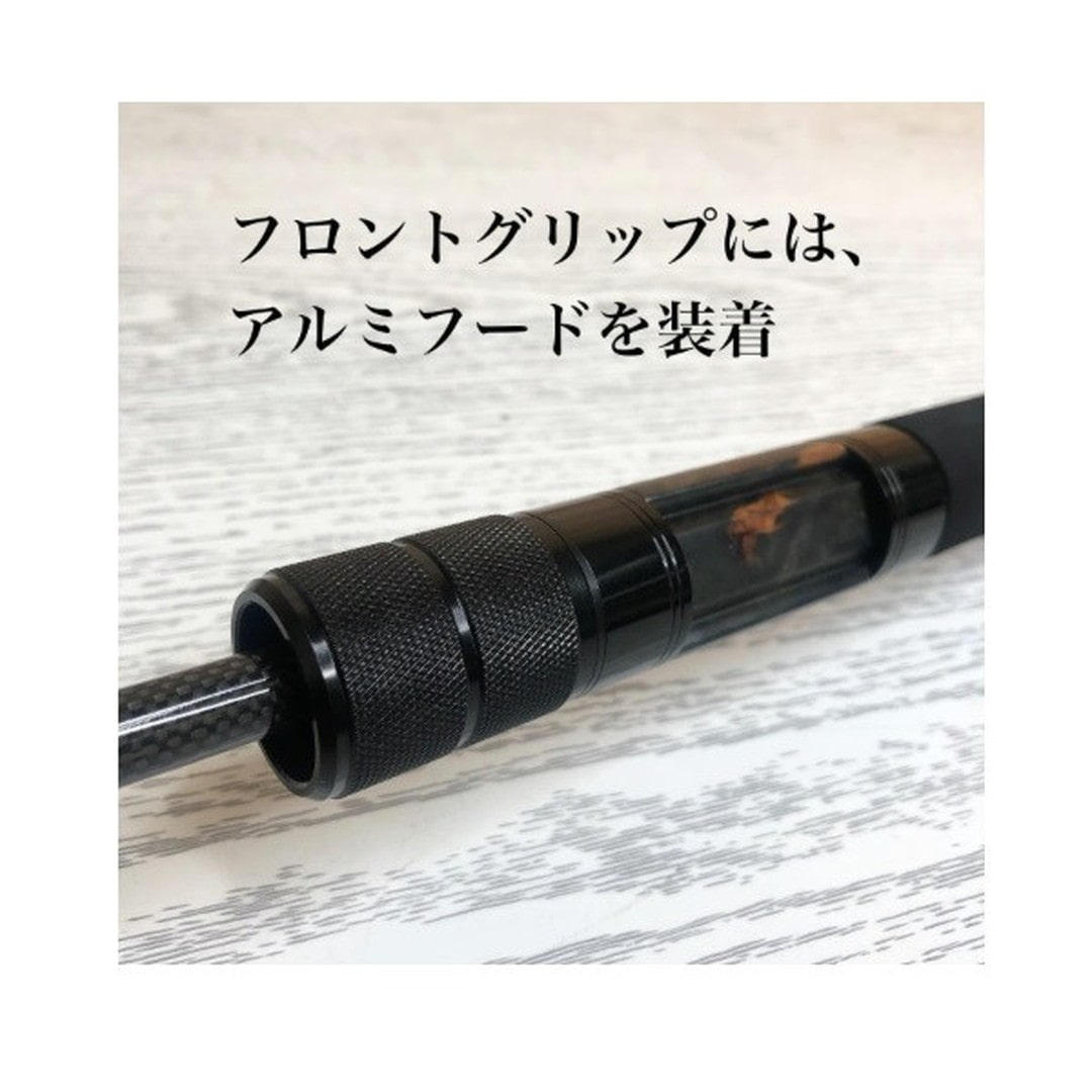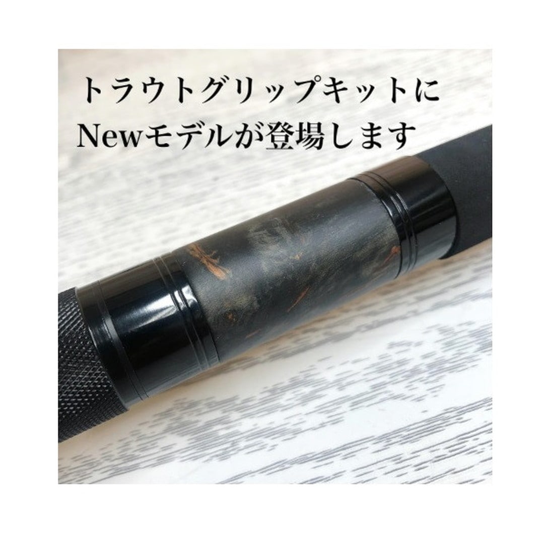 フロントグリップで止めるタイプ(HLタイプ)のJustaceオリジナルトラウトスピニンググリップキットです。ブラックはフロントはローレット加工を施したブラックアルマイトのアルミフード、リアグリップはブラックEVA仕様。