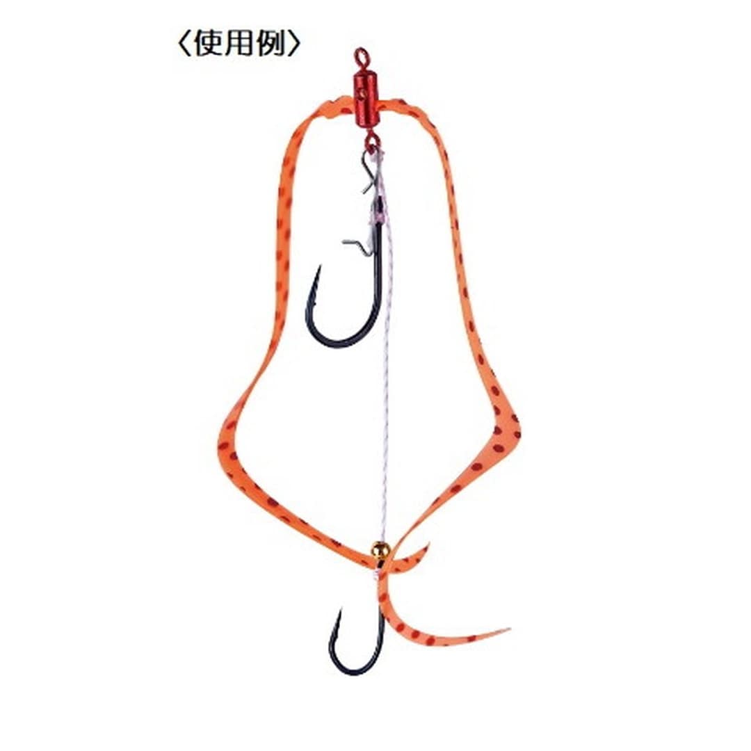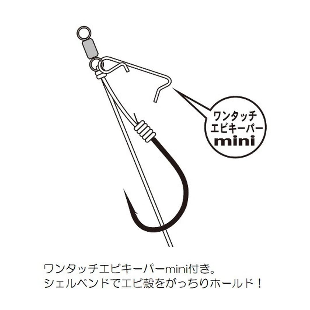 ハリスには強度としなやかさを併せ持つ桜幻カスタムフックリーダー8号を採用することで活きエビだけでなく、冷凍エビにも対応し、頭が取れにくい仕様。フックには実績のあるフッキングマスターを使用し、親バリはサイズL、孫鈎はサイズS。新開発のワンタッチエビキーパーminiを搭載。・ショート(S)→小エビや、二匹付けに最適。・ミドル(M)→一般的な遊動テンヤ。・ロング(L)→芝エビなど、大型エビ対応。・ミドル+SSH(M+SSH)→カスタムスイベル仕様は鯛ラバ用ネクタイを取り付けたエビラバにも対応。