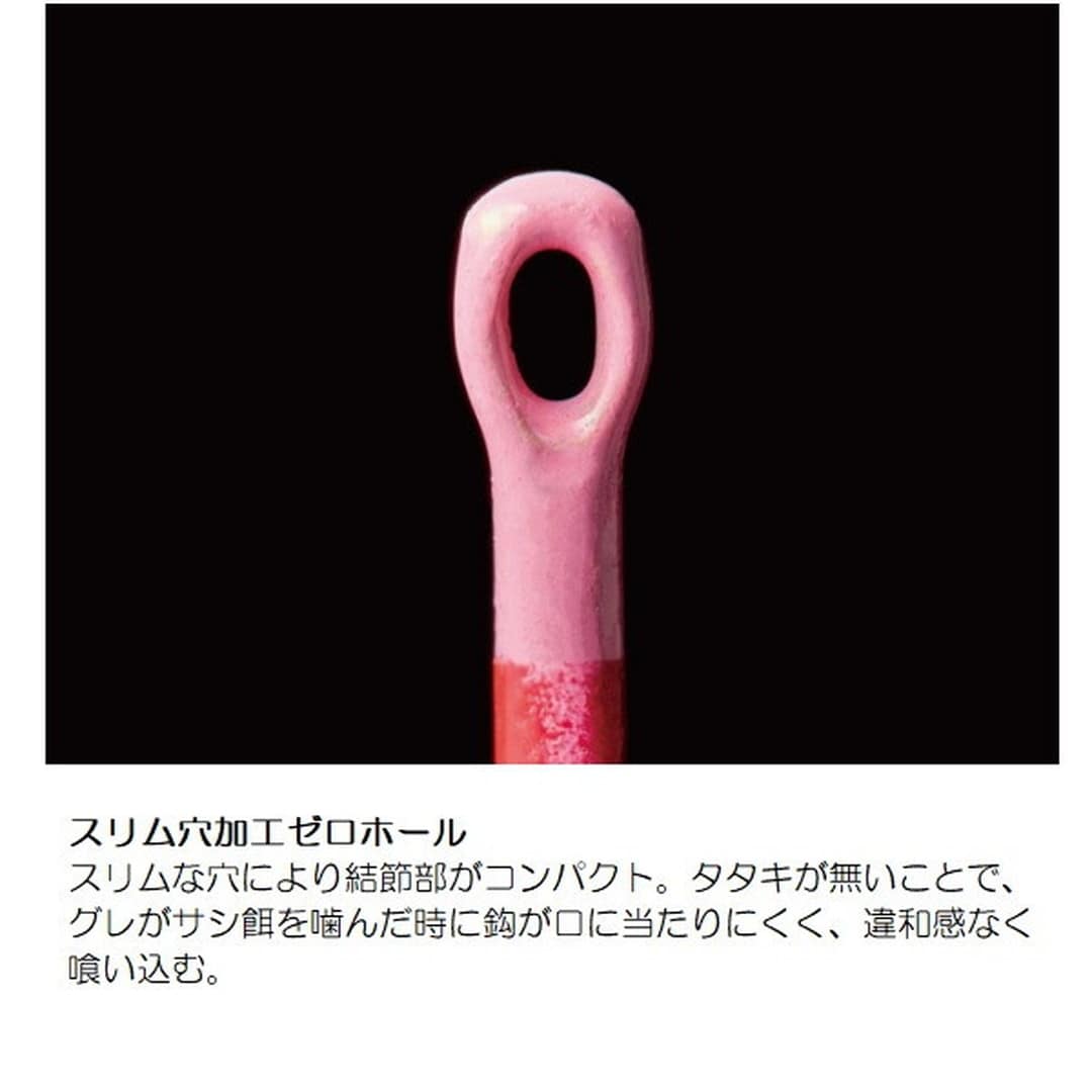 スレた尾長が違和感なく喰う!!速攻アワセ対応!深く刺さり込む攻撃的鈎先角度。ごく僅かなネムリを持たせた鈎先形状により、スレた尾長特有のウキを軽く押さえる一瞬のアタリを鈎掛かりに持ち込む。違和感を感じると即座に鈎を吐き出す浅棚でのスレた大型尾長狙いに対応。