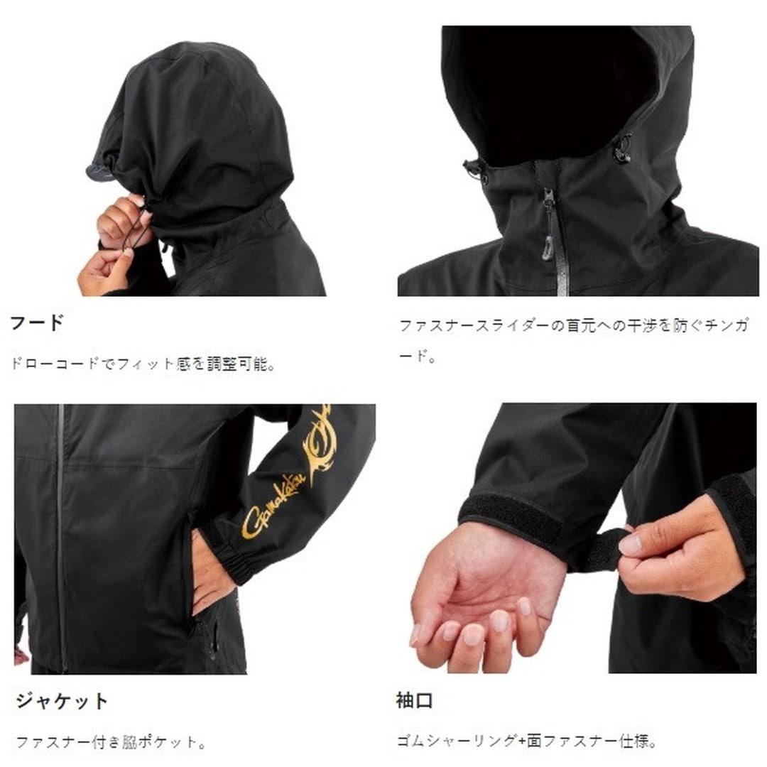 スタンダードレインスーツ。耐水圧10000mm、透湿10000g/m2・24hのG-SPEC素材を使用したスタンダードなレインスーツ。●フードはドローコードを採用することで、キャップをかぶった状態でも頭部にジャストフィットできます。●ジャケットには大型ポケットを採用。●袖口はきっちりフィットできるゴムシャーリング+面ファスナー仕様。